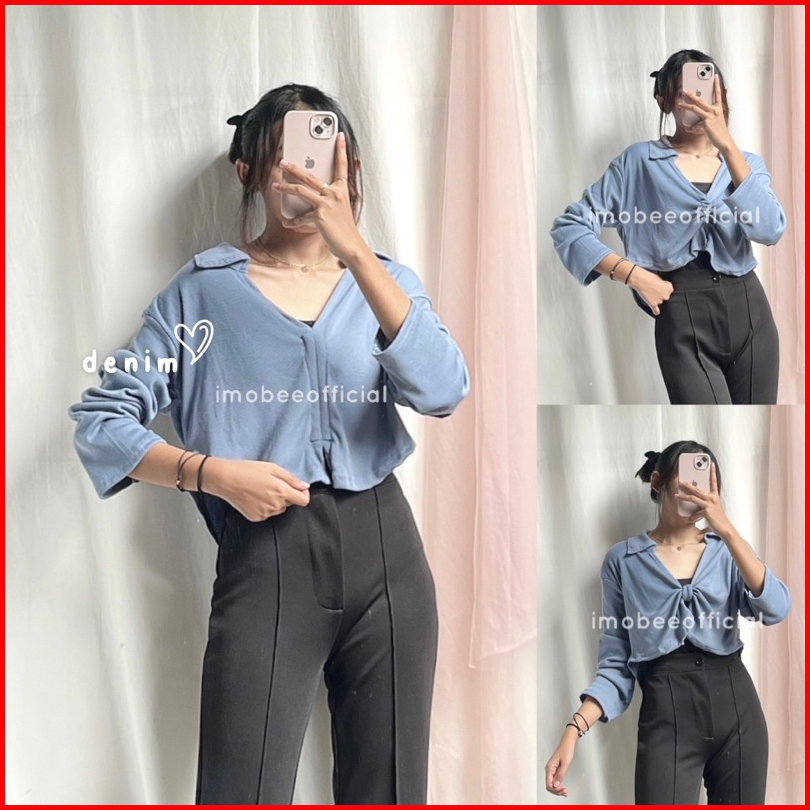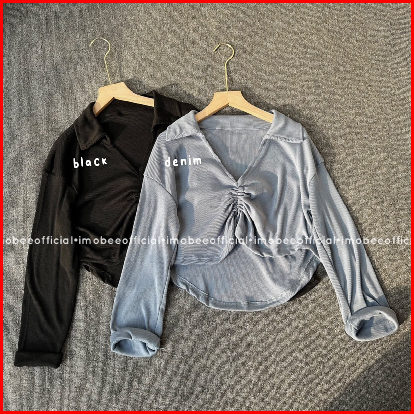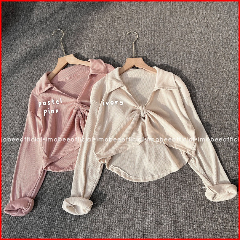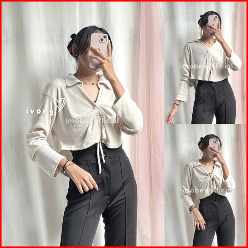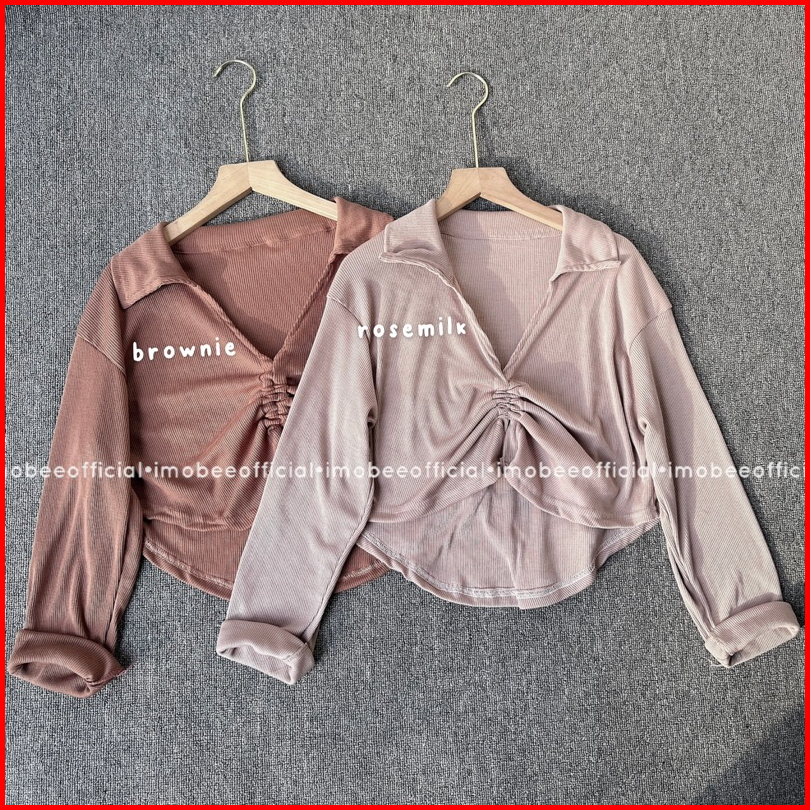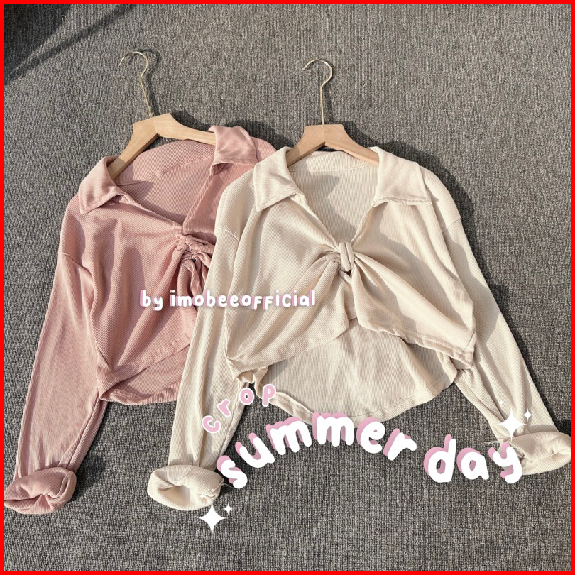 Summer Day Crop Knit Ribb Serut Blouse Tali Kerut Rib Cardi Crop Serut Kaos