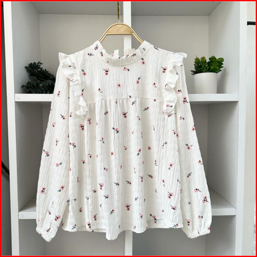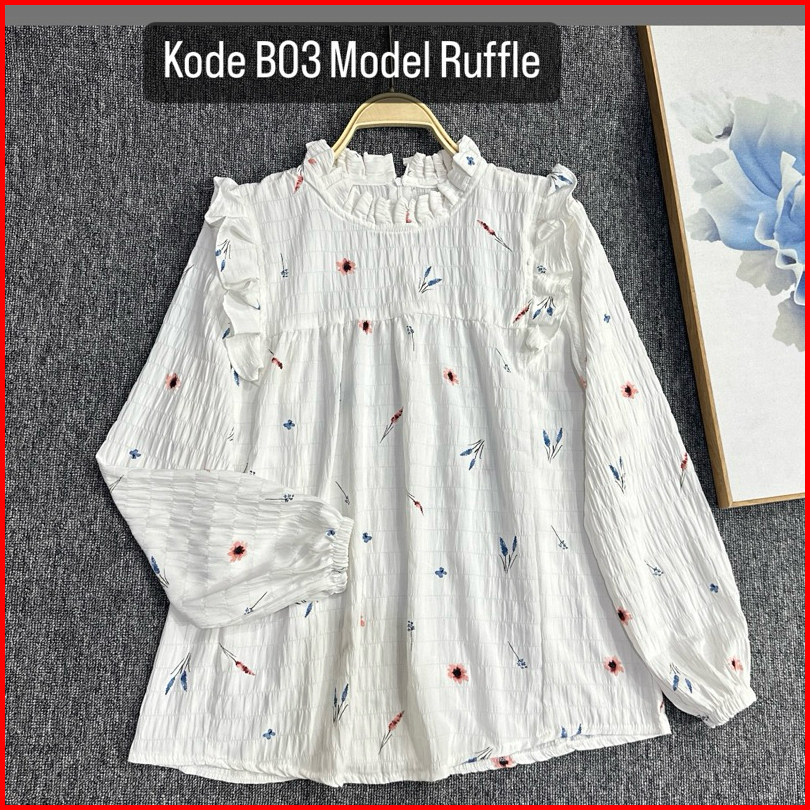 Yurim Blouse Ruffle Wanita Terbaru Bahan Crinkle