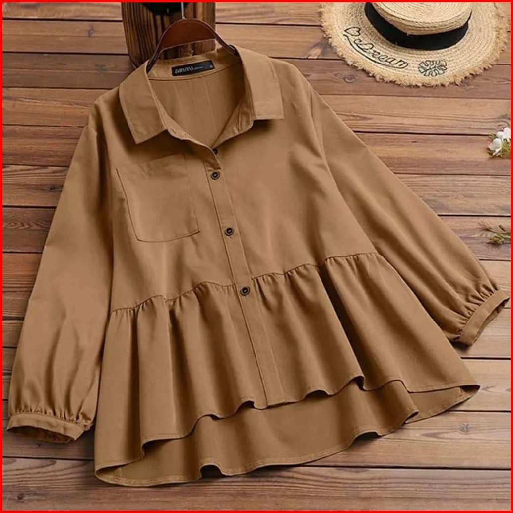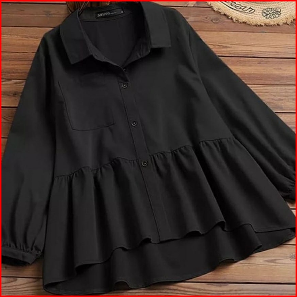 Vallina Outfit - Wily Top Blouse Plained Wrinkle Full Button Baju Atasan Kemeja Remaja Wanita Korean Style