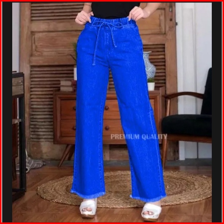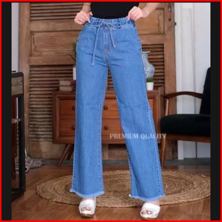 Kulot Jumbo Celana Jeans Jumbo Wanita Pinggang Karet Kulot Rawis Big Size Celana Jumbo