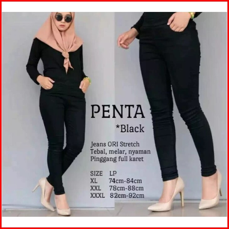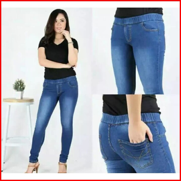 Celana Jumbo - Jeans Premium Wanita - Jumbo - Pinggang Karet - Melar - Street