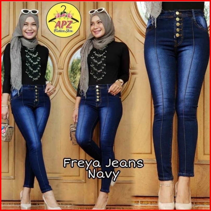 Celana Panjang High Waist Kancing 5 Line Freya . Celana Panjang High Waist Button Highwaist Kancing