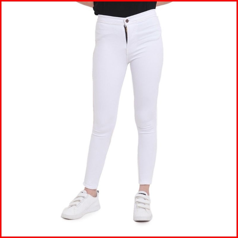 Celana Jeans Putih Wanita Highwaist Pinggang Tinggi