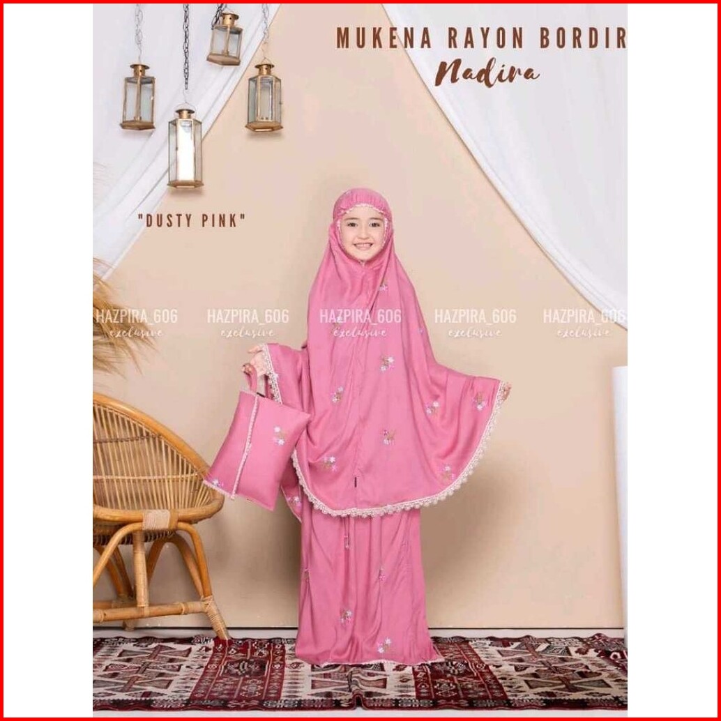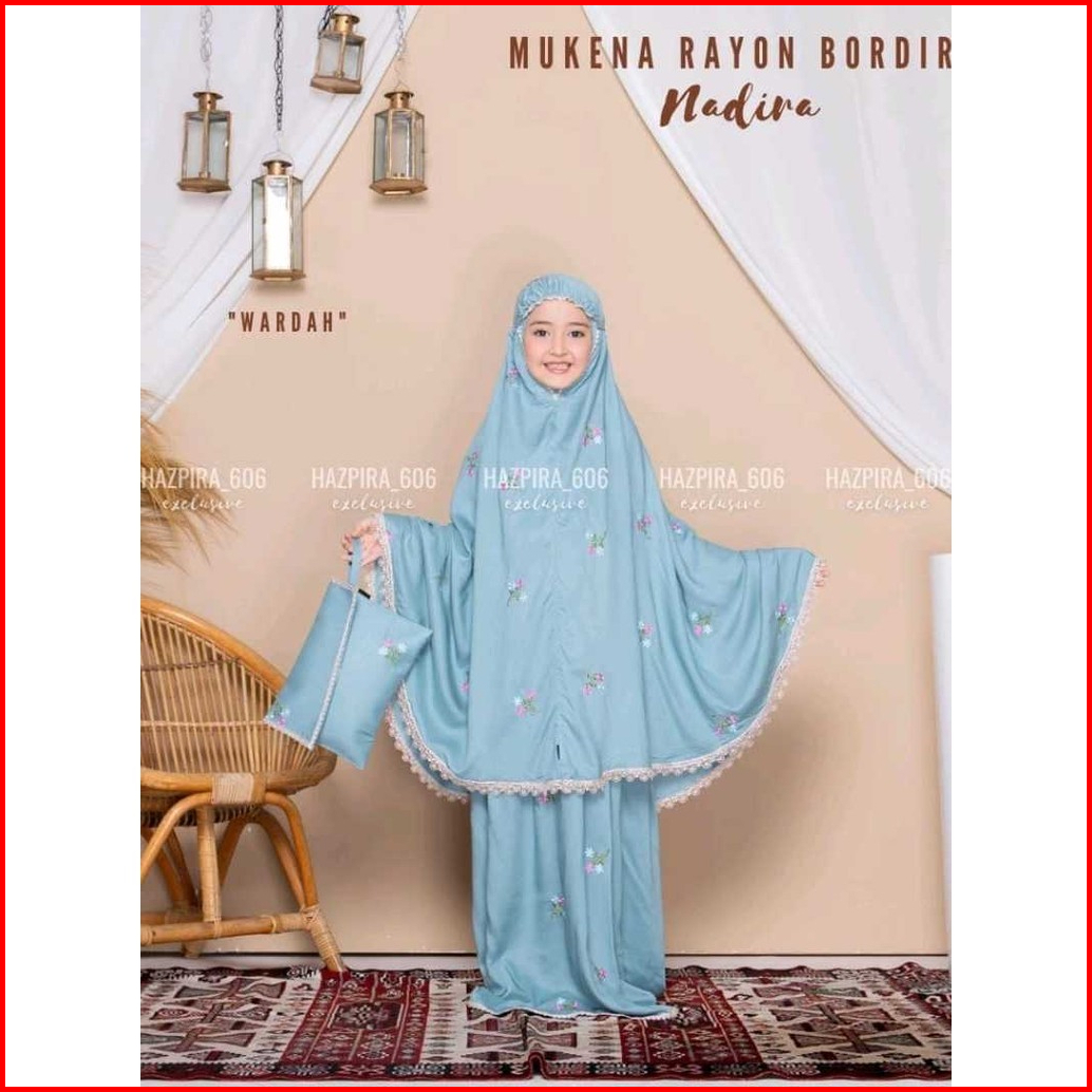 Mukena Nadira Anak Umur 3-15 Tahun Katun Rayon Bordir Nadira Mukena Mewah Anak Tanggung Viral Terlaris Terbaru 2024