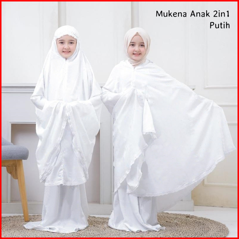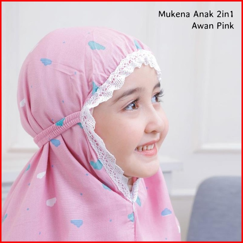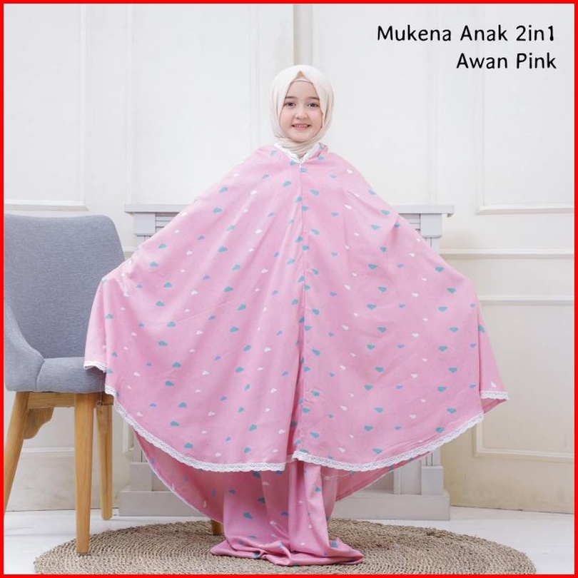 Mukena 2in1 Anak Usia 8 9 10 11 12 Tahun Motif Karakter Awan Cantik Bahan Katun Rayon Adem Model Lucu
