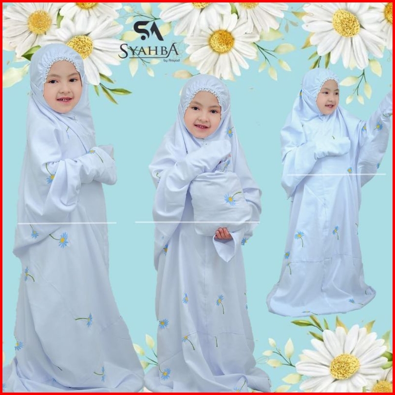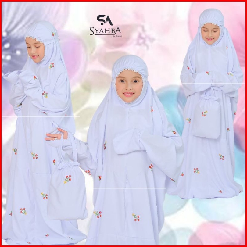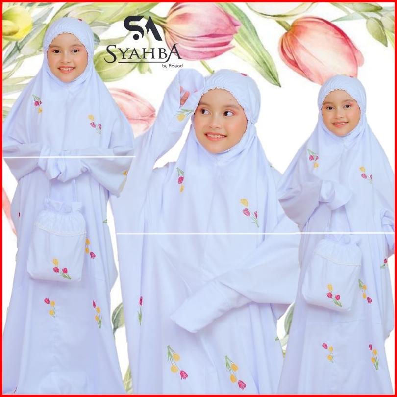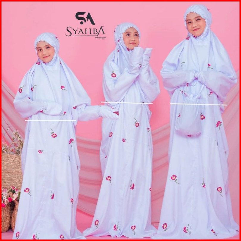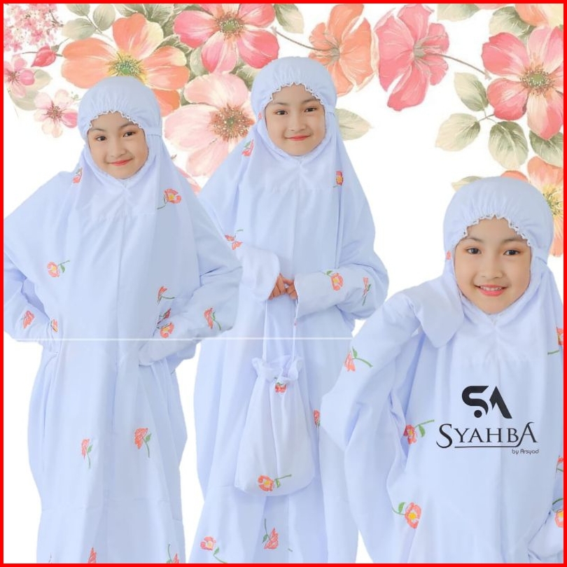Mukena Terusan Khusus Putih Bunga Anak Tk Sd Remaja Mukena Santri Syahba