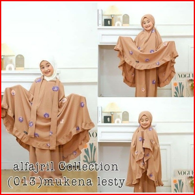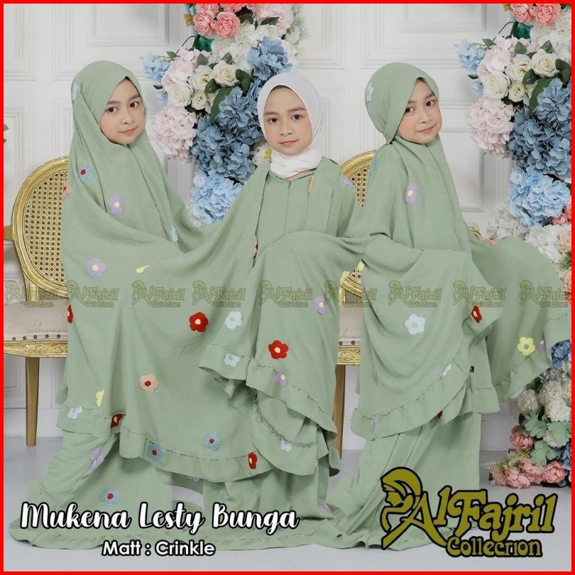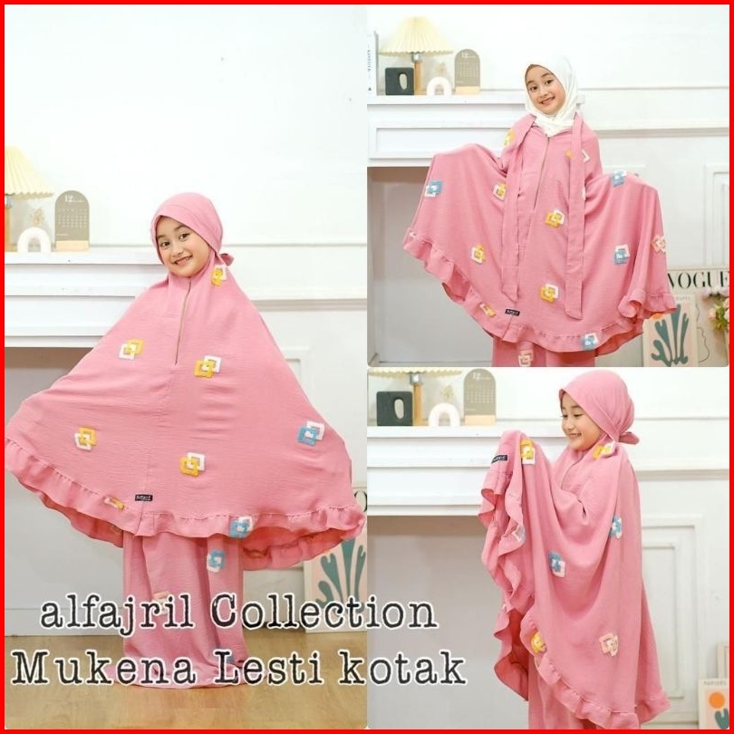 Mukena Anak Lesty Usia 6-10th Mukena Anak Cringkle Motif Pom Pom Polos Model Terbaru