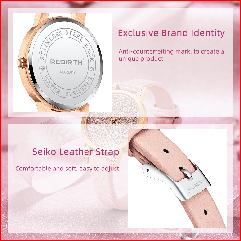 Rebirth Jam Tangan Wanita Anti Air Mode Korea Jam Wanita Tali Kulit Jam Tangan Cewek Original