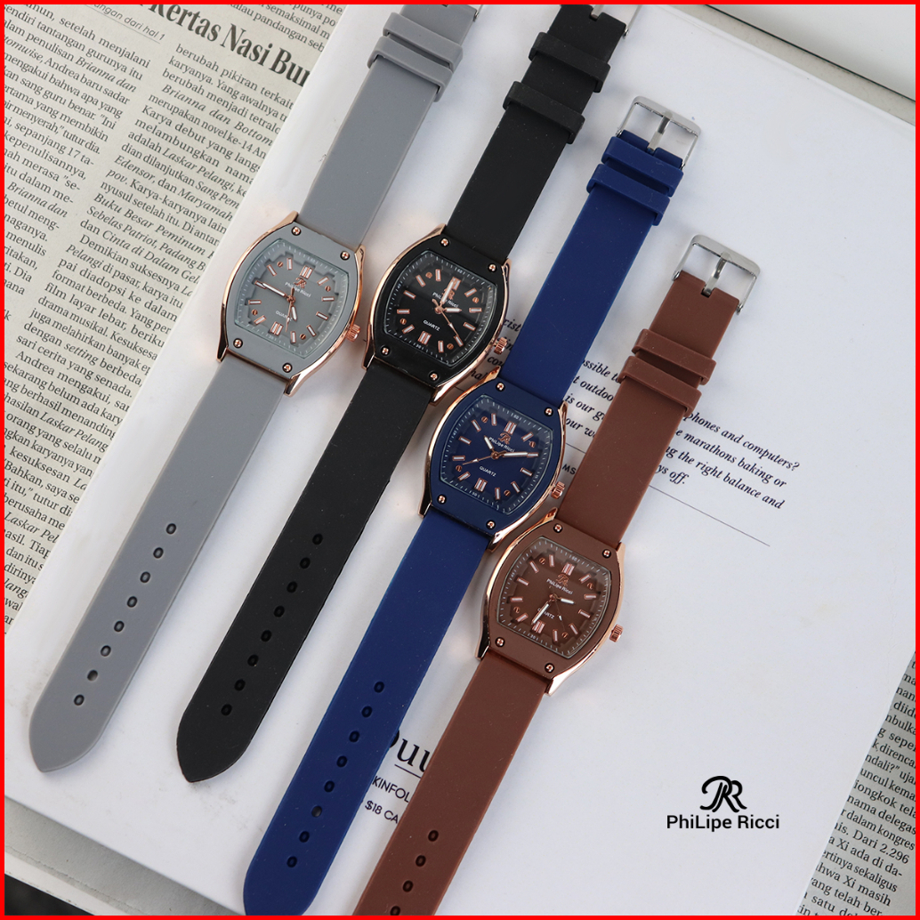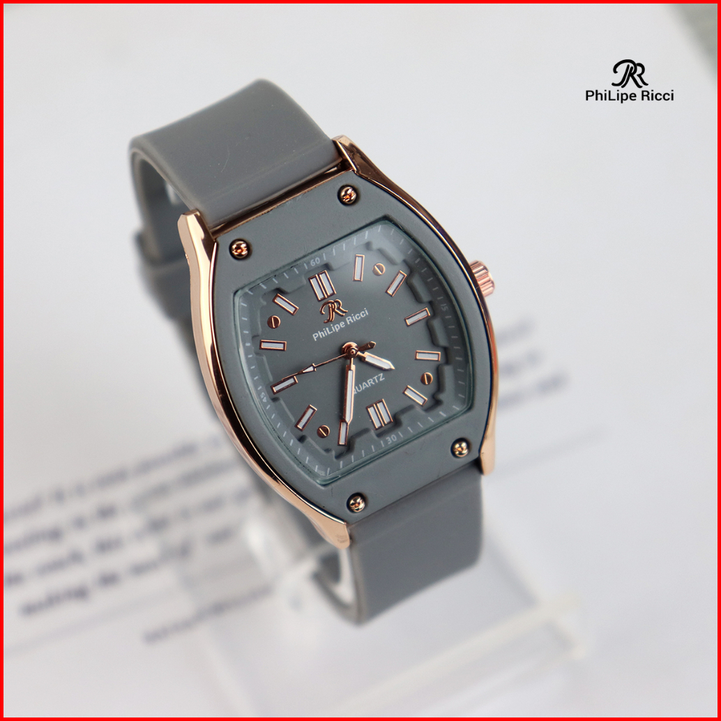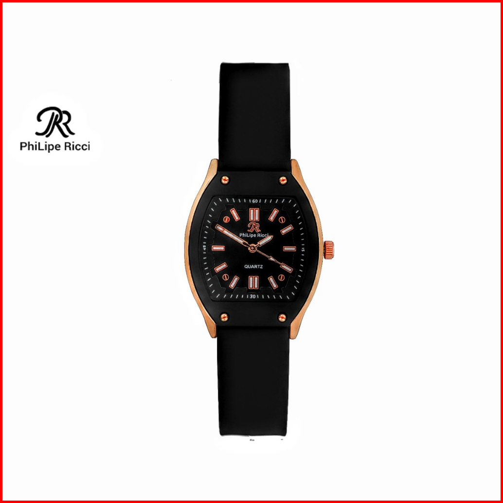 Philipe Ricci Jam Tangan Wanita Strap Tali Karet Analog Quartz Model Terbaru Diameter Kotak Kekinian 5046 Square Free Bo