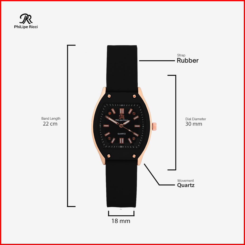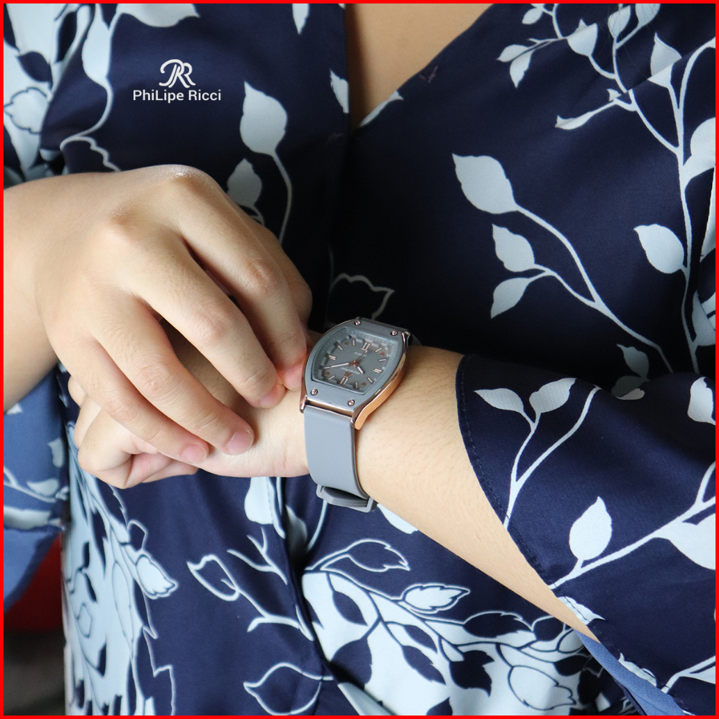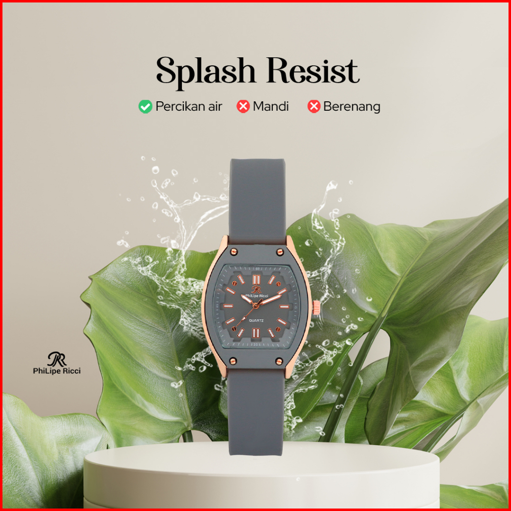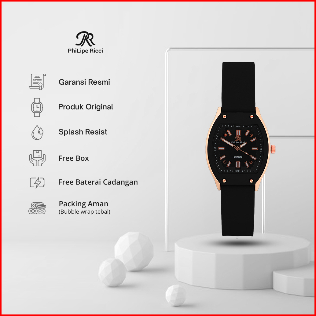 Philipe Ricci Jam Tangan Wanita Strap Tali Karet Analog Quartz Model Terbaru Diameter Kotak Kekinian 5046 Square Free Bo