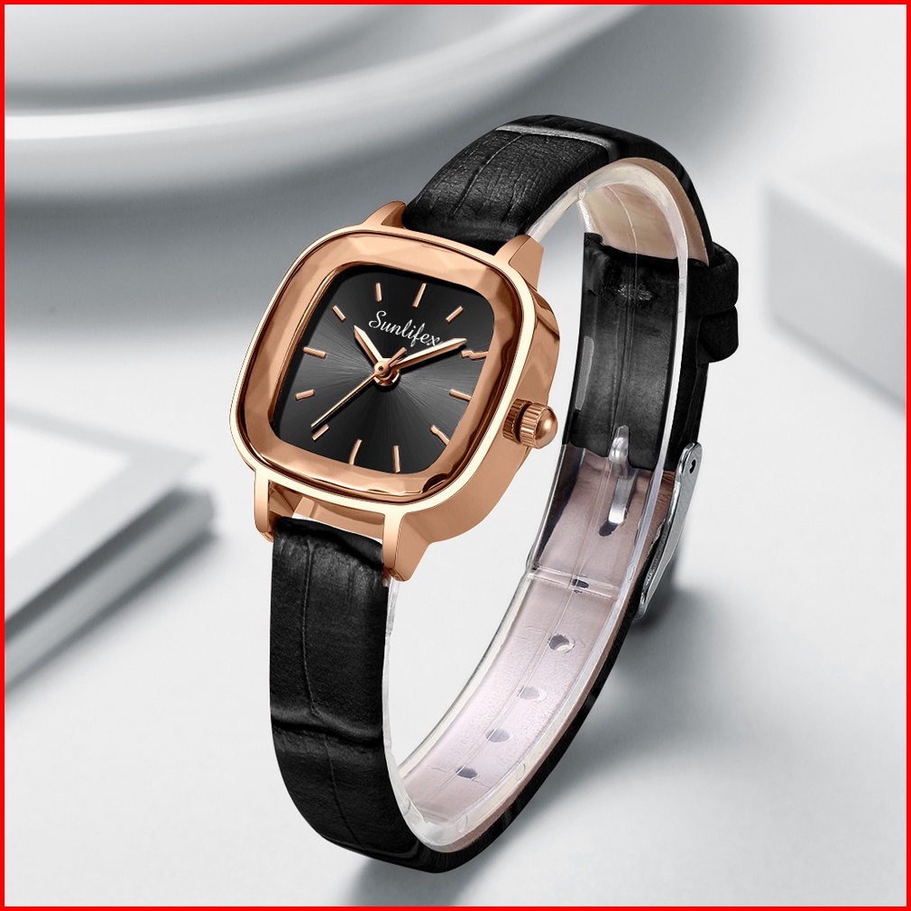 Sunlifex Jam Tangan Wanita Kecil 8003 Jam Original Square Dial Tali Kulit Jam Tangan Cewek Anggun Santai