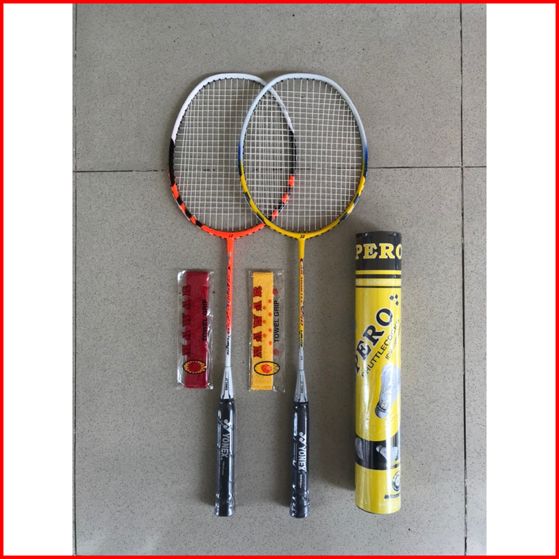Raket Bulutangkis Paket Lengkap Satu Set Raket Badminton Grip Tas Shuttlecock