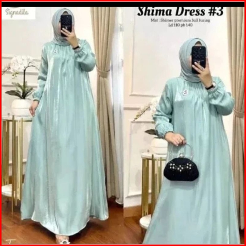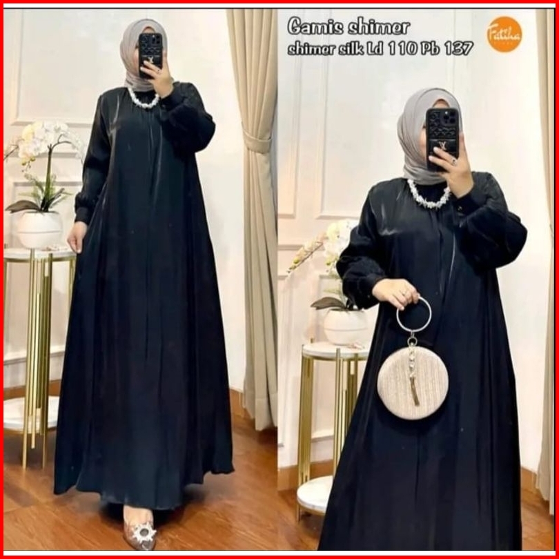 Gamis Shimmer Silk Jumbo Premium Dress Wanita Dewasa Elisa Terbaru 2024 Baju Muslim Perempuan Model Abaya Muslimah Gaun