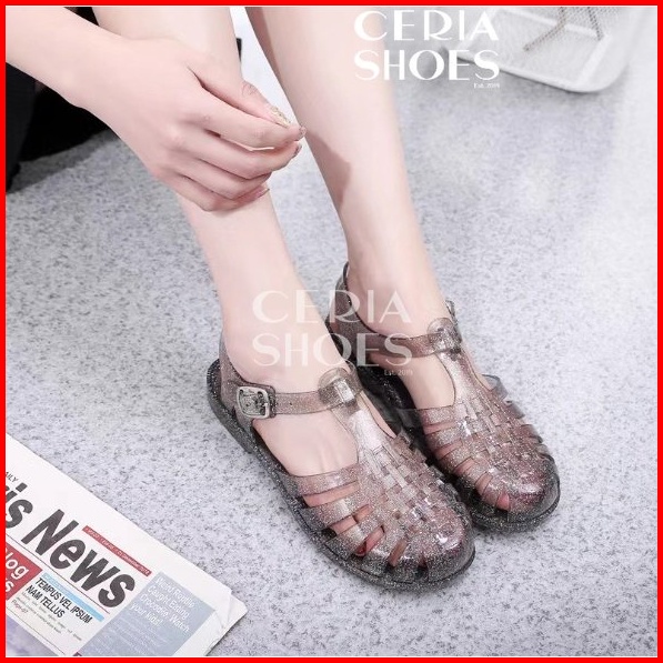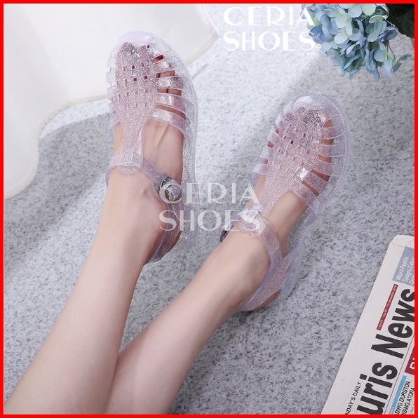 Sandal Jelly Shoes Wanita Transparant Meisha Bahan Karet Elastis Dengan Tali Pengait Tali Belakang 03