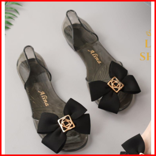 Sandal Flat Jelly Wedges Wanita Slipper Transparant Motif Pita 186-a2
