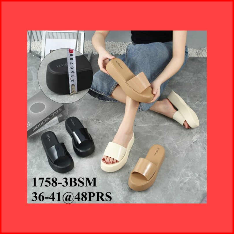 Sandal Selop Wedges Tinggi Hys 1758 Sandal Karet Jelly Terbaru Kekinian