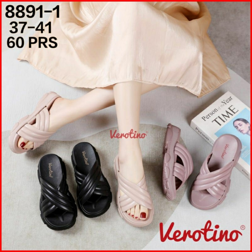 8891-1 Wedges Sandal Verotino Selop Jelly Gunung Wanita Import Ban Tali Silang Ryder Platform Tebal Tinggi Sendal Karet