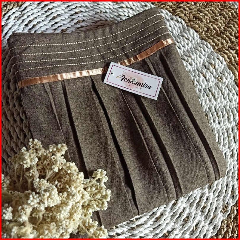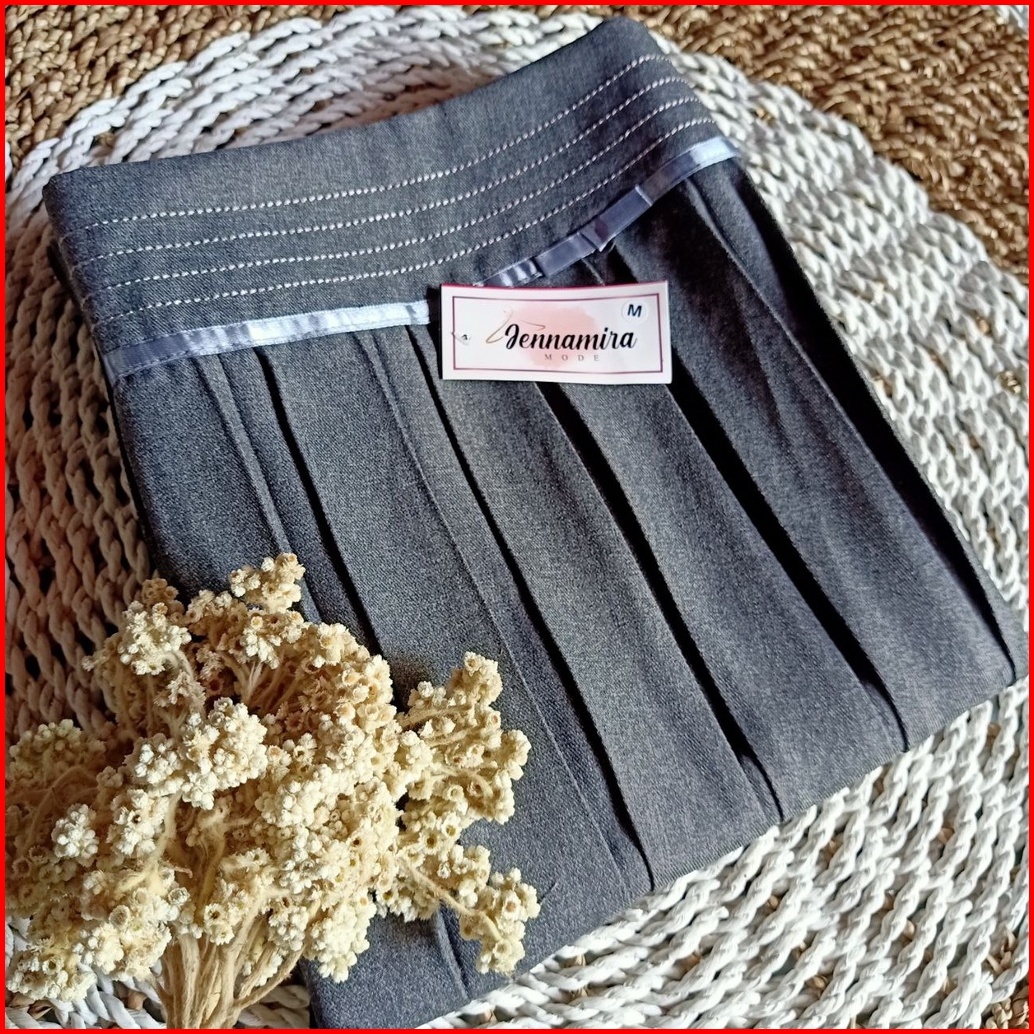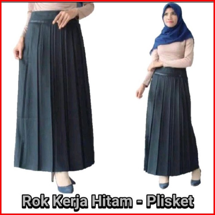 Rok Panjang Plisket Kerja Bahan Semiwool Resleting
