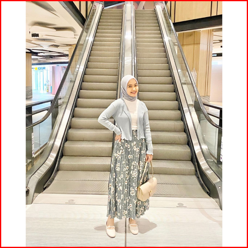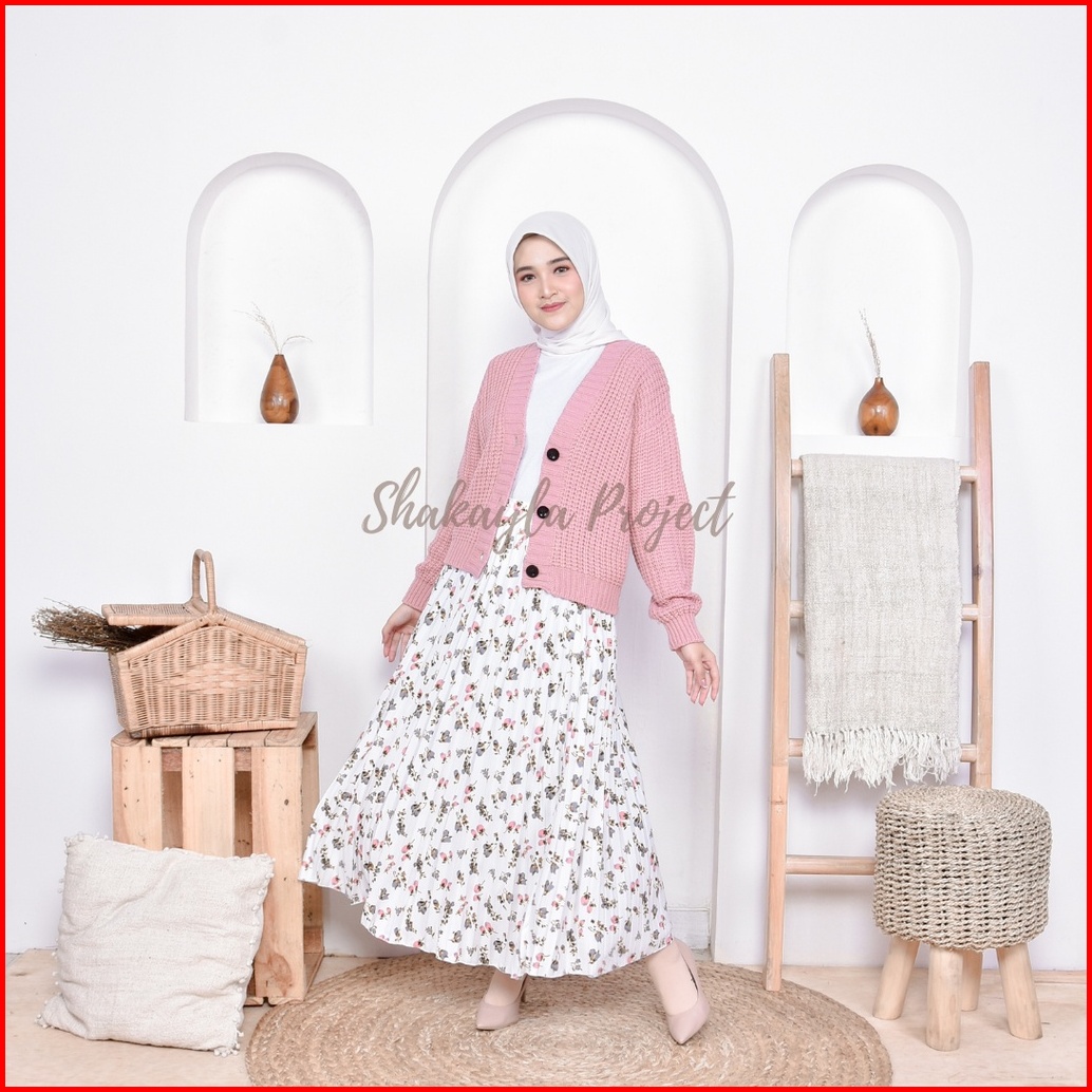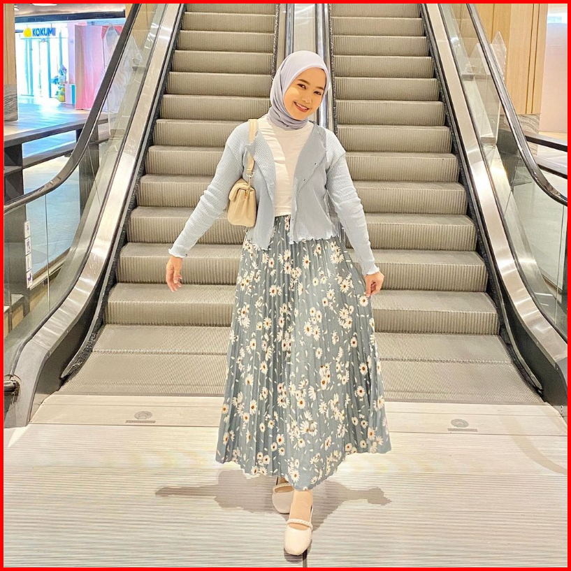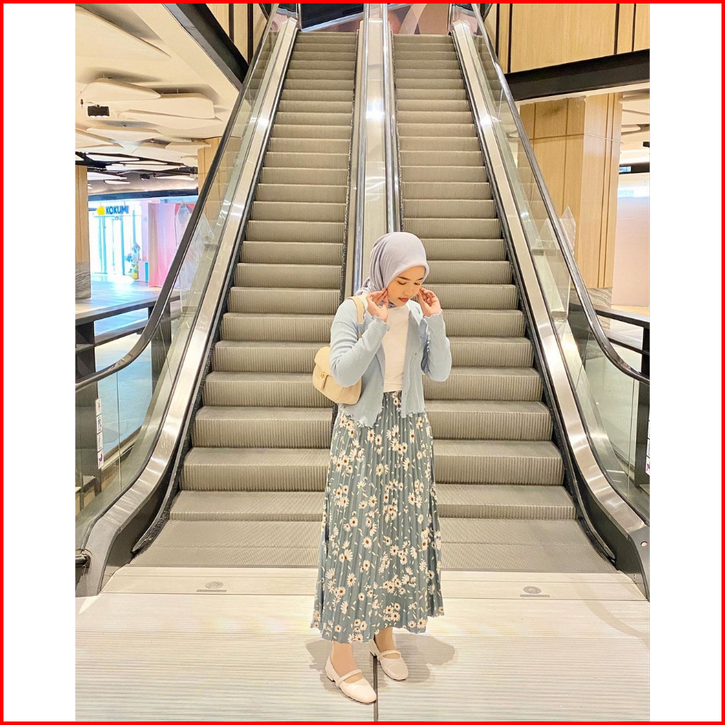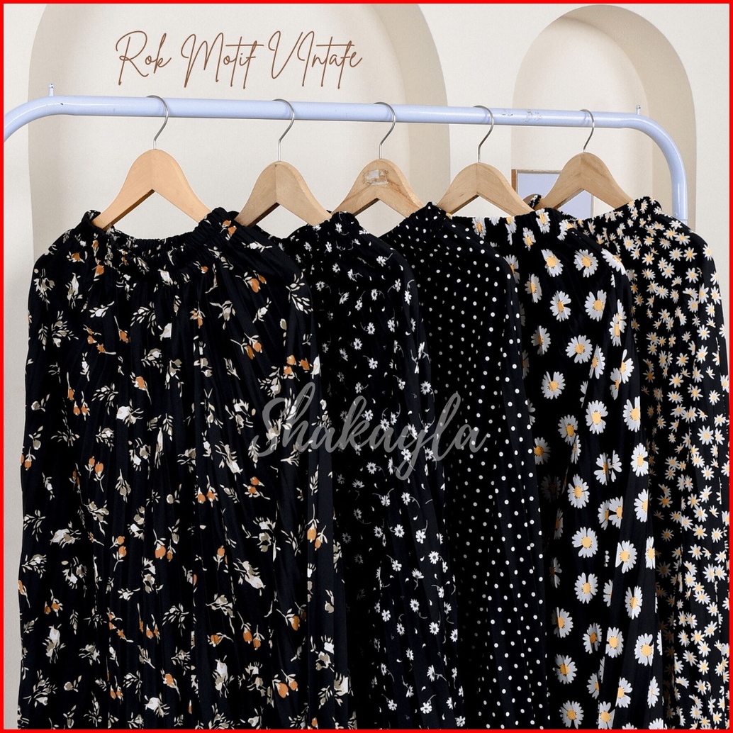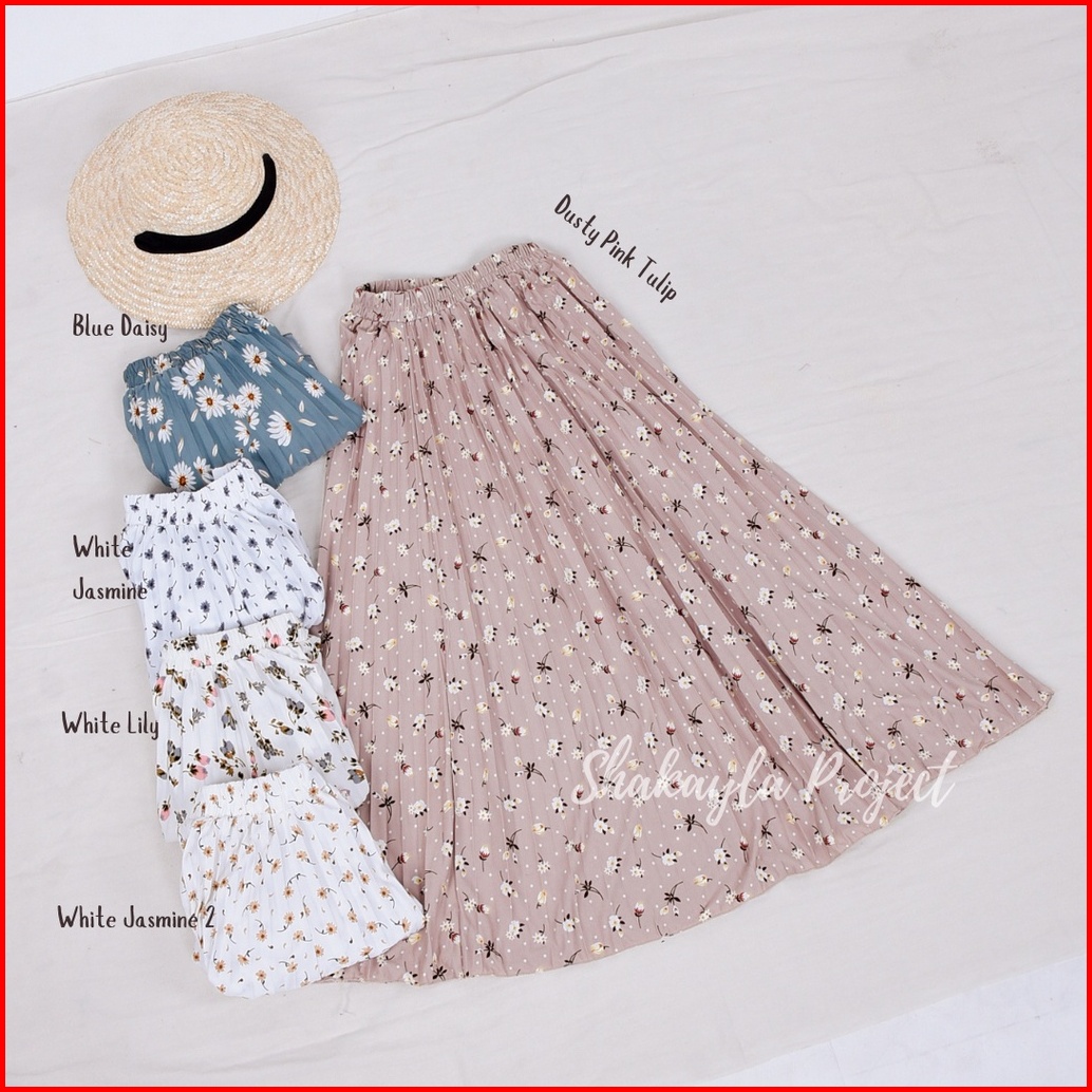 Shakayla Rok Plisket Premium Motif Bunga Daisy Lily Melati Vintage Skirt Korean Skirt Fit To L P90cm