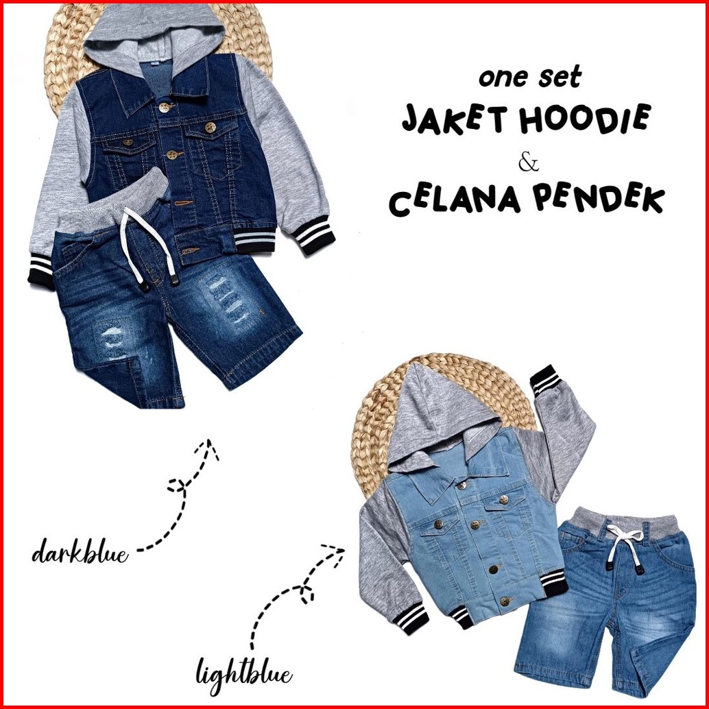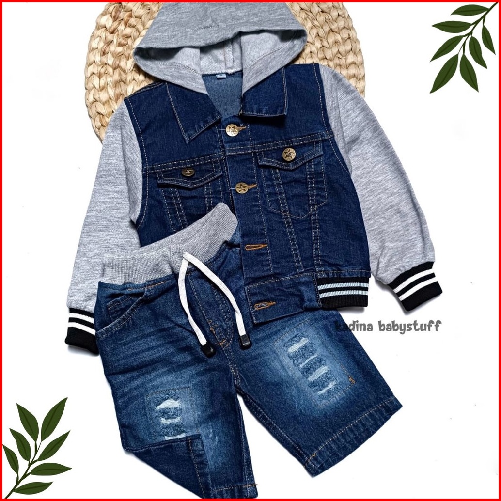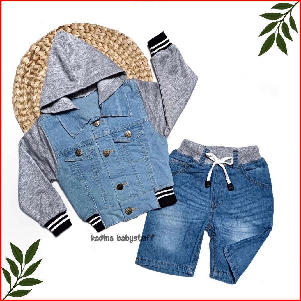 Terbaru Setelan Anak Laki-laki Jaket Jeans Hoodie Anak 1-8 Thn Celana Jpendek Anak Laki-laki