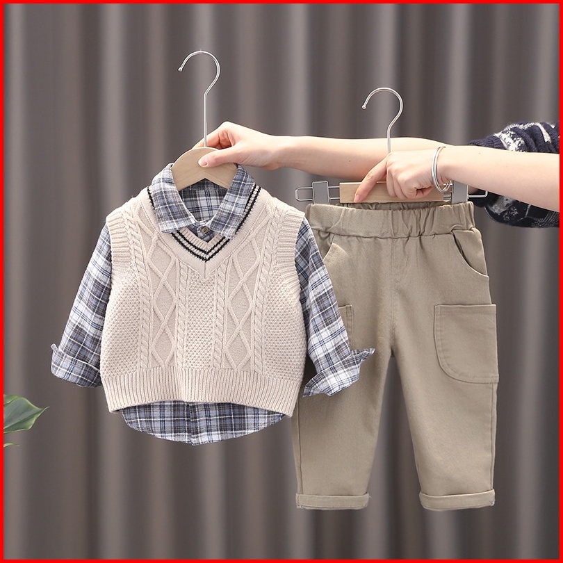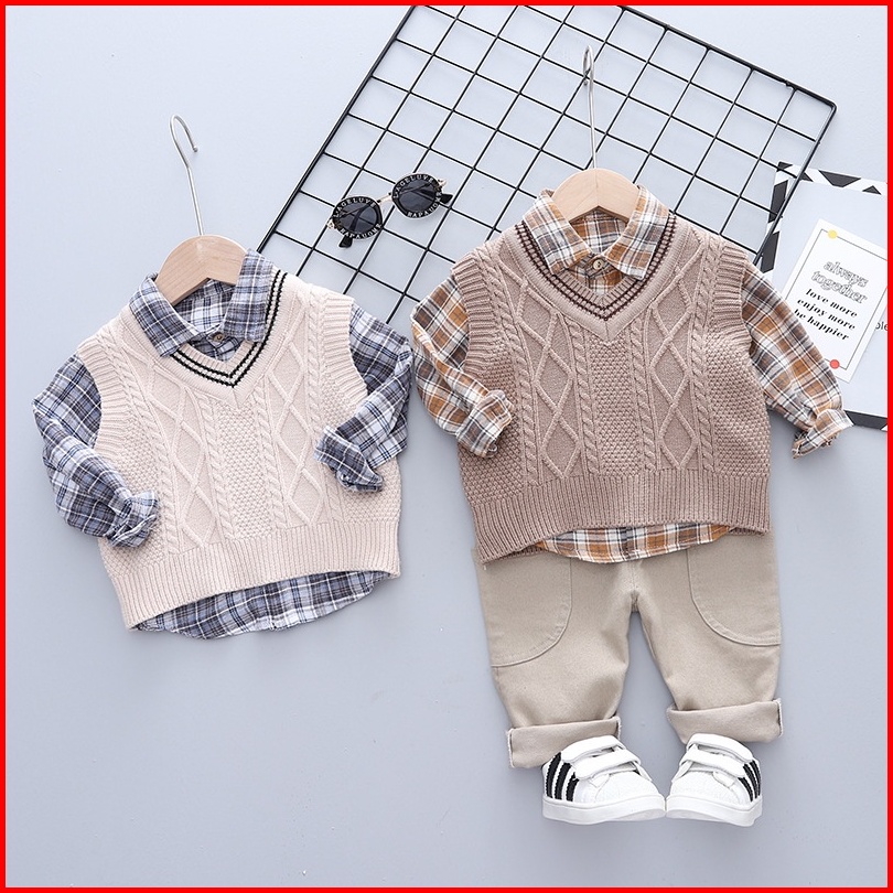 Babybeans - Stelan Bayi Motif St24 Setelan Bayi Laki-laki Setelan Anak Set 3pcs Vest Kemeja Celana Set Boy Baju Import B
