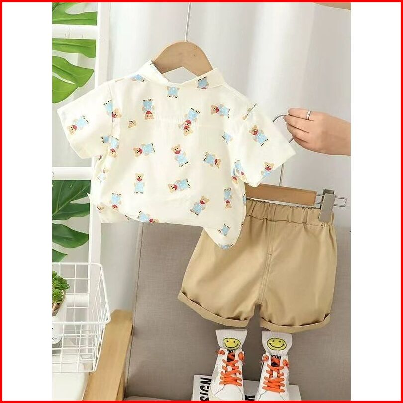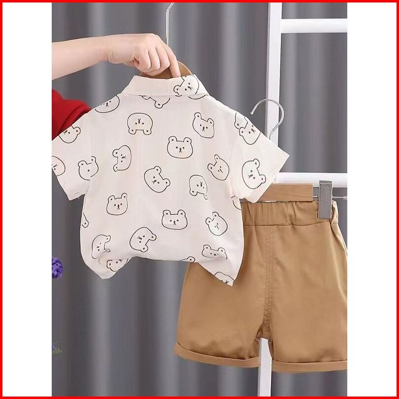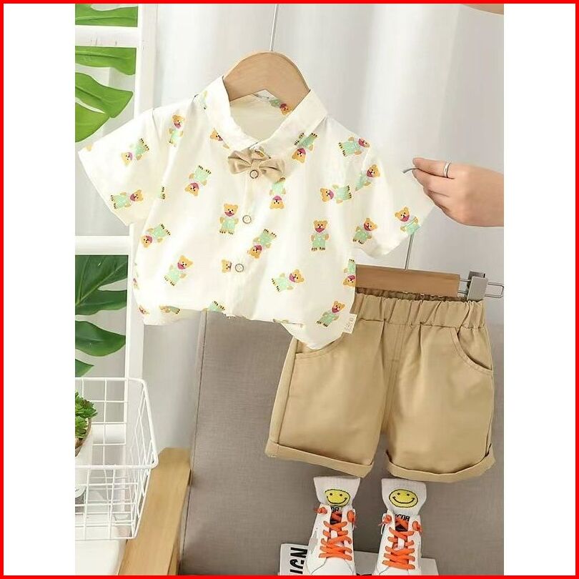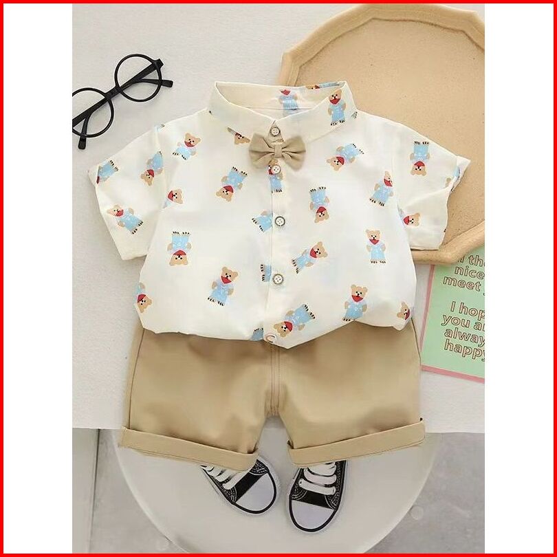 Promo Puncak 9.9 Cherry Setelan Kemeja Anak Motif Beruang Satu Set Dengan Dasi Baju Anak Laki Laki Kb34