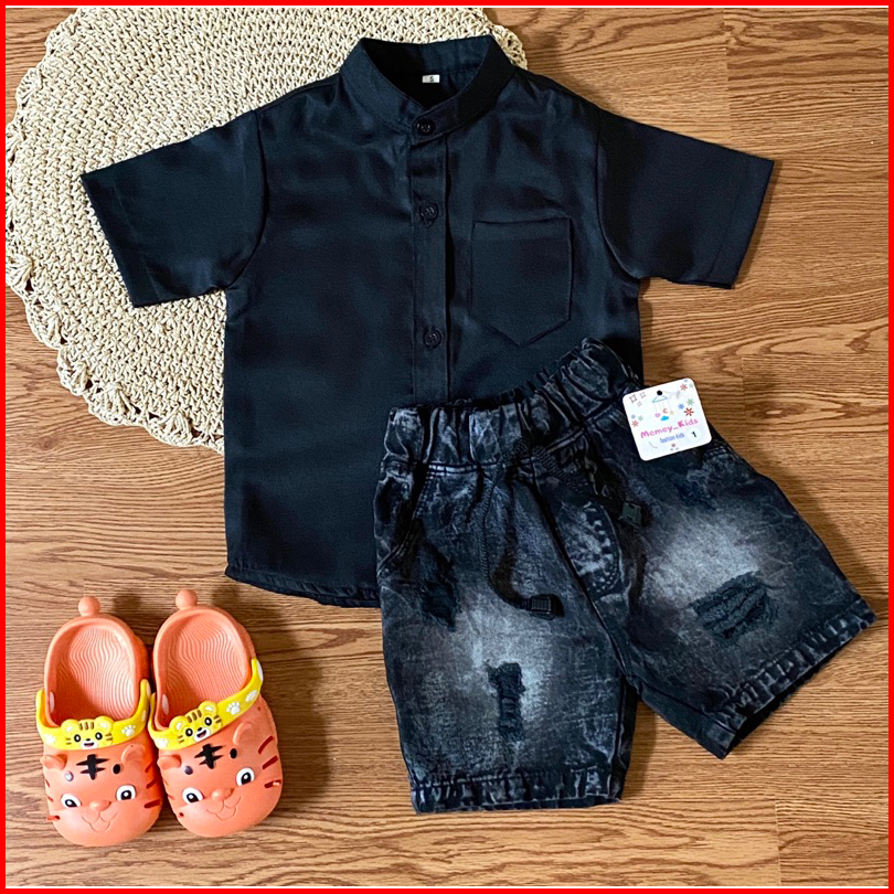 Setelan Pendek Jeans Setelan Anak Kemeja Jeans One Set Kemeja Baju Setelan Anak Laki Laki