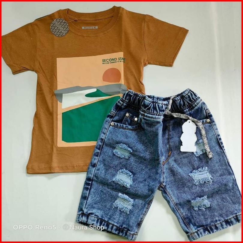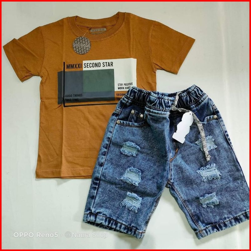 Baju Setelan Jeans Sobek Anak Laki2 1-7 Tahun