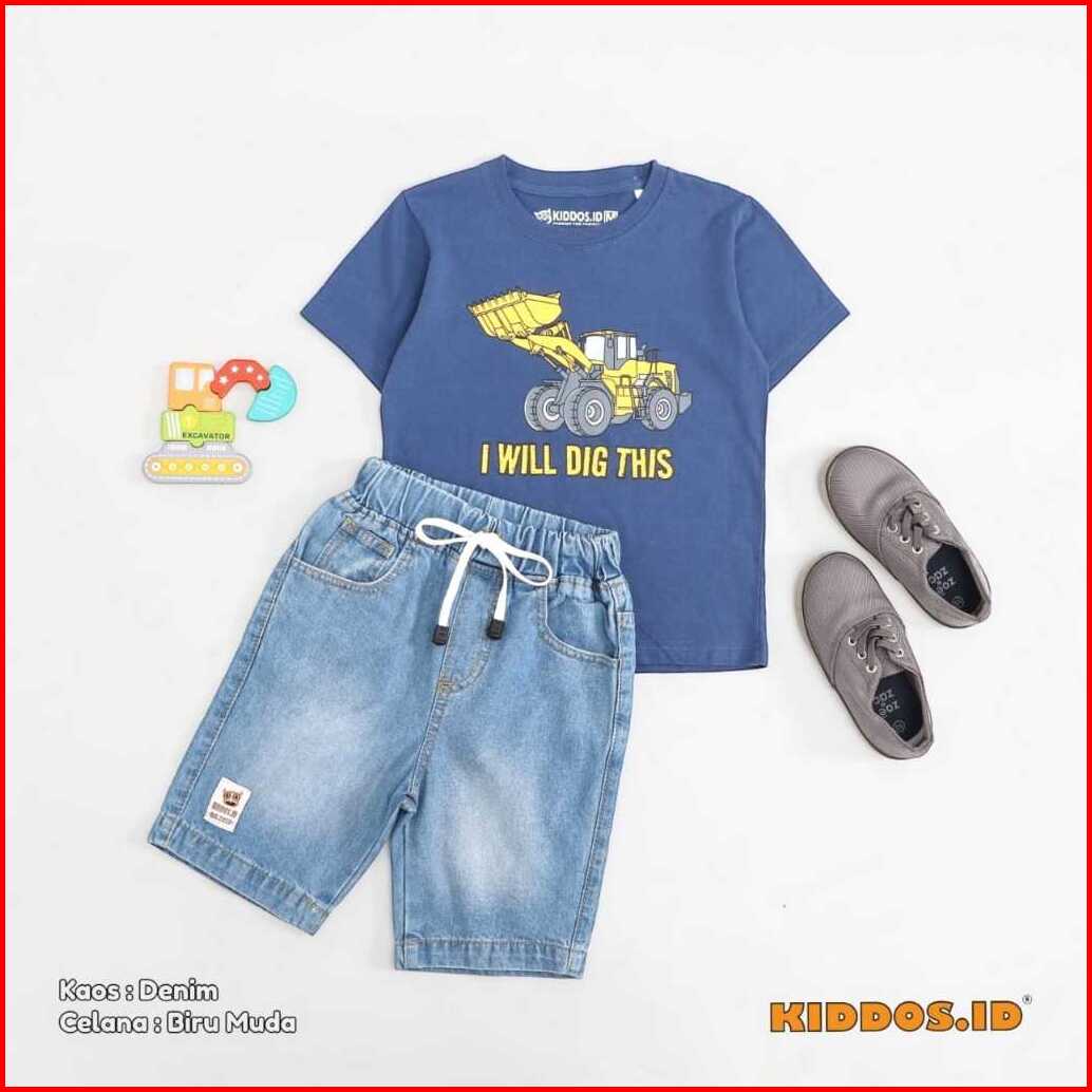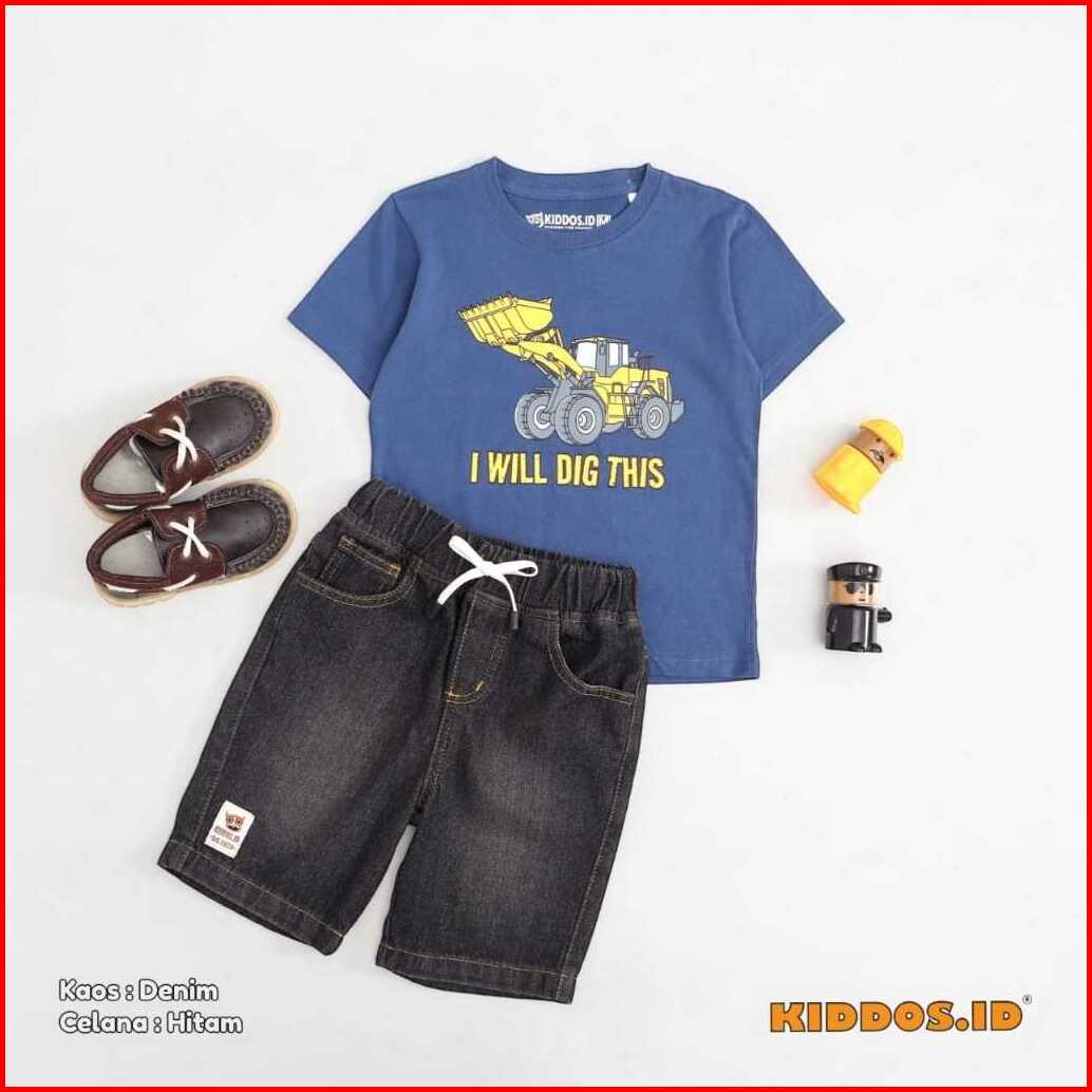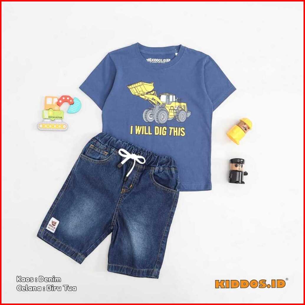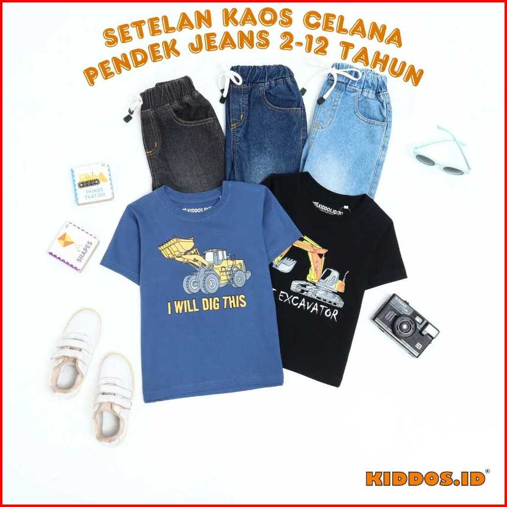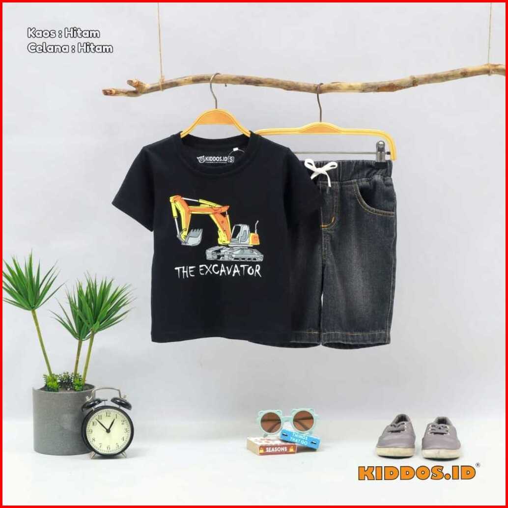 Setelan Kaos Anak Celana Pendek Jeans Anak Laki Laki The Excavator Kiddos Id