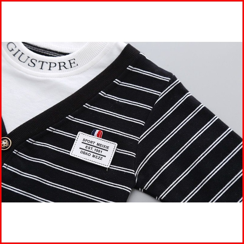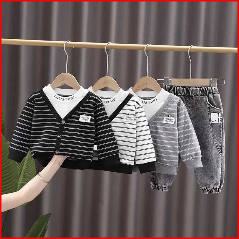Mazakids Setelan Anak Laki Laki Lengan Panjang Motif Cardigan Grey Black Usia 4 Tahun Premium Mazakids