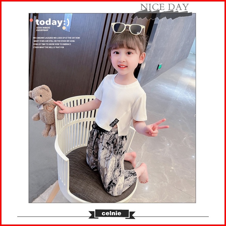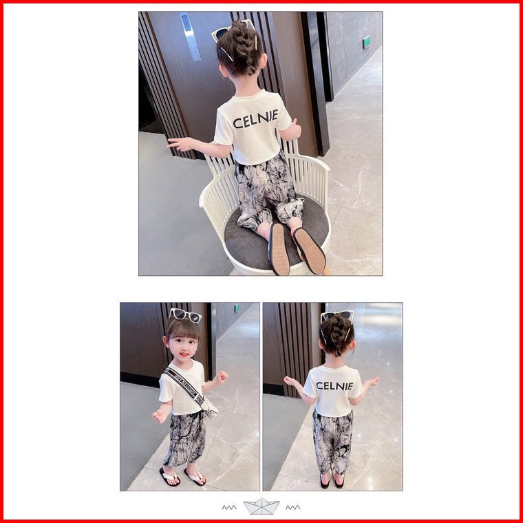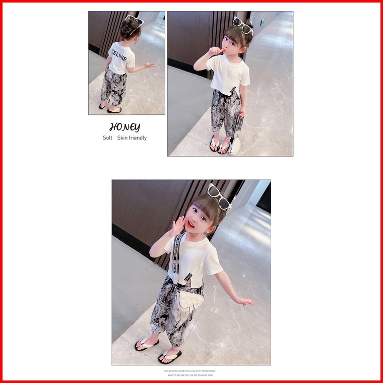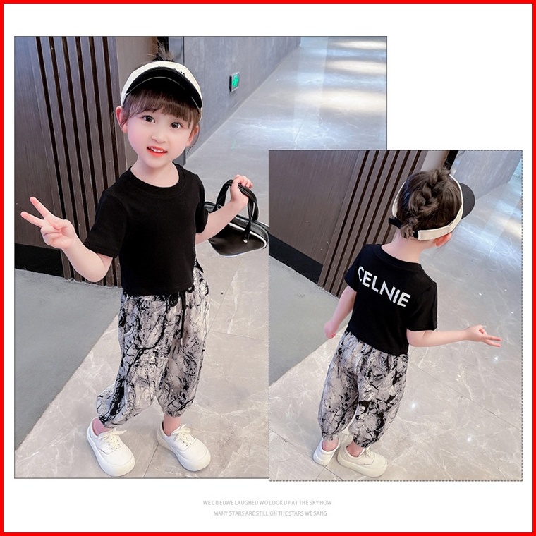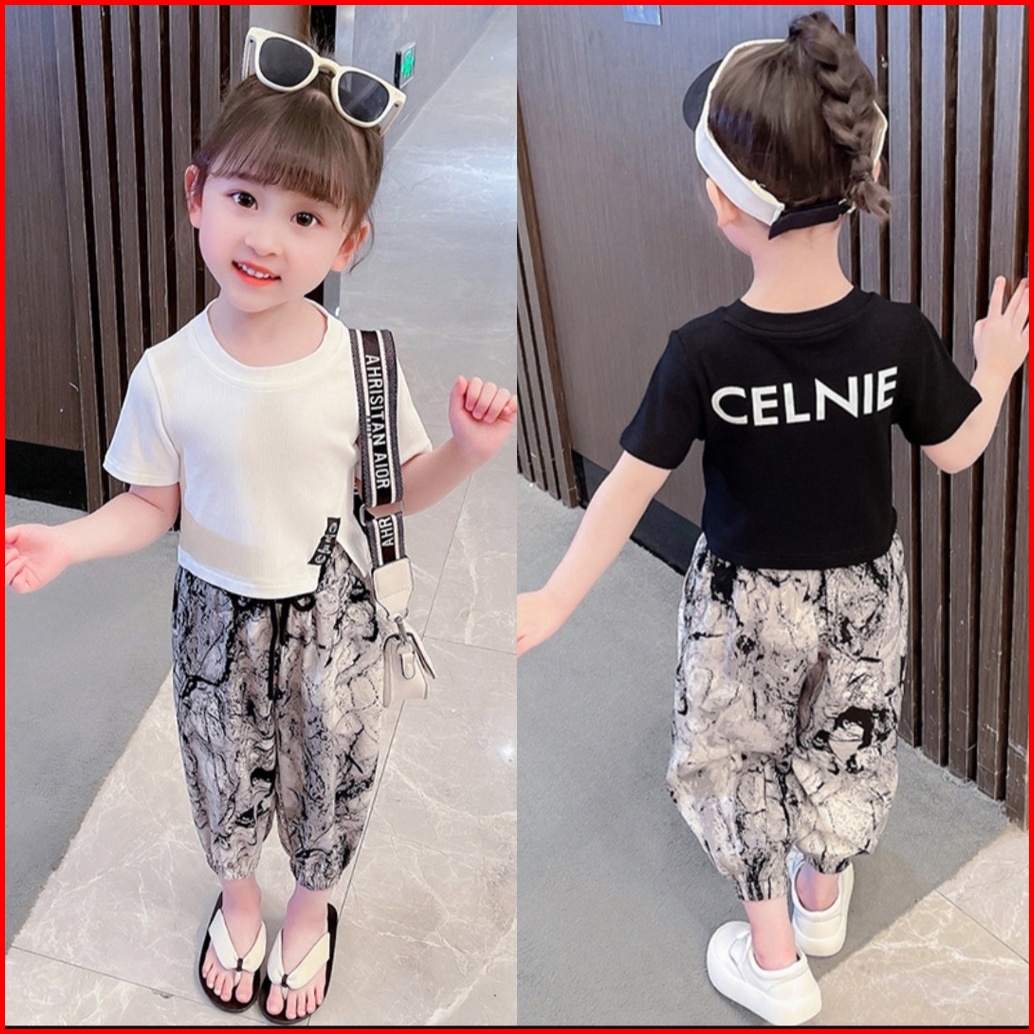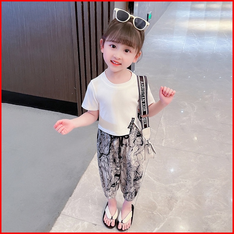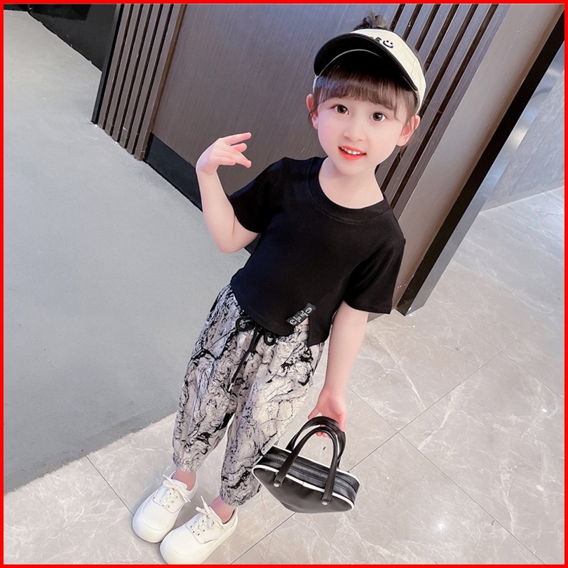 Setelan Anak Perempuan Crop Top Celana Jogger Katun Import