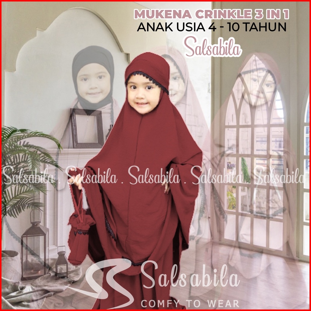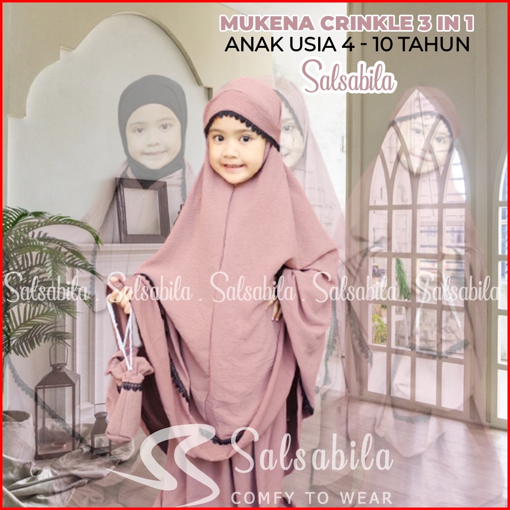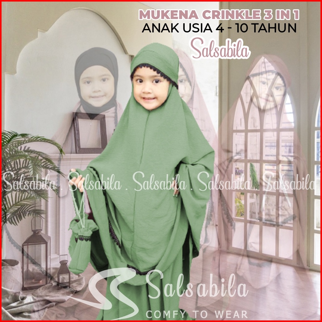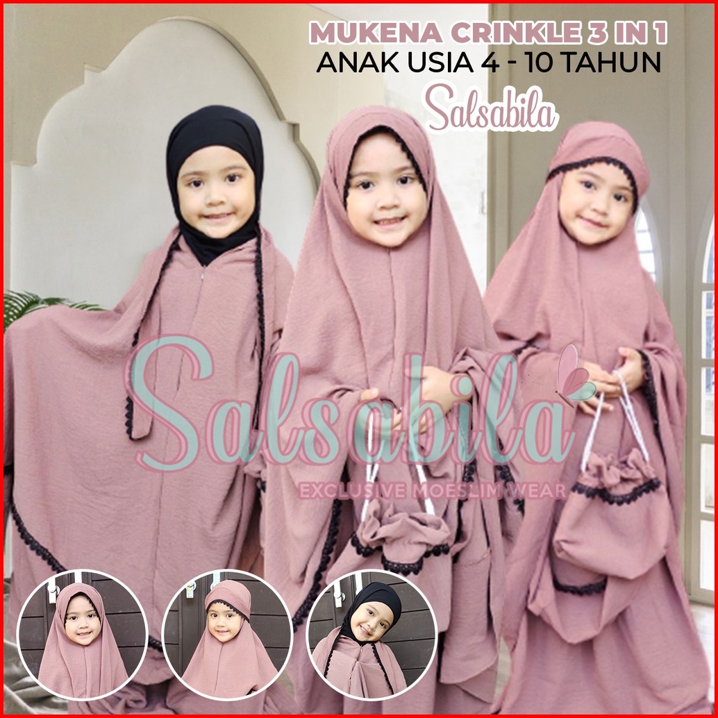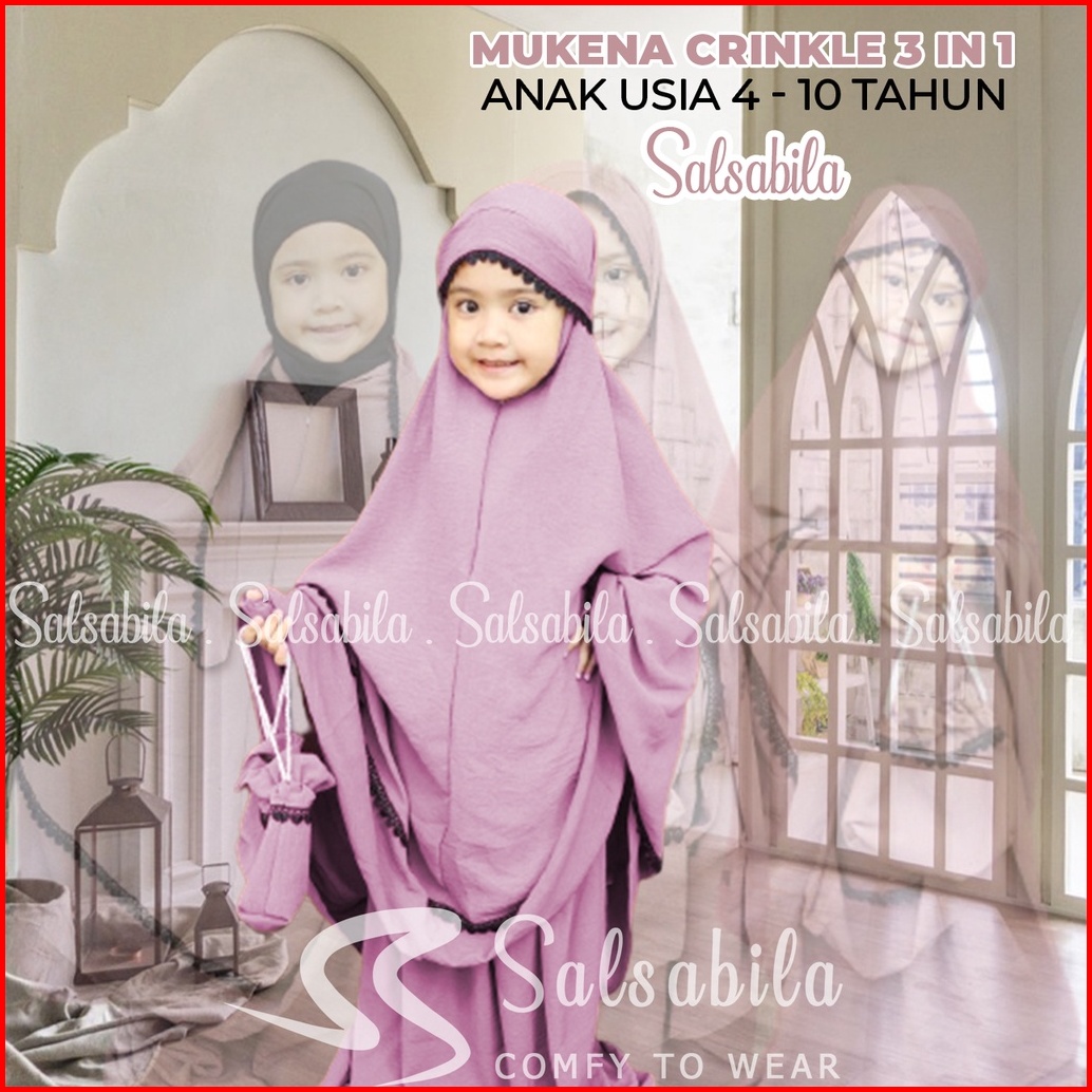 Mukena Crinkle Anak 3 In 1 Renda Salsabila Usia 4 - 10 Tahun Traveling