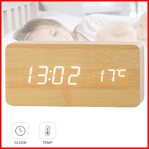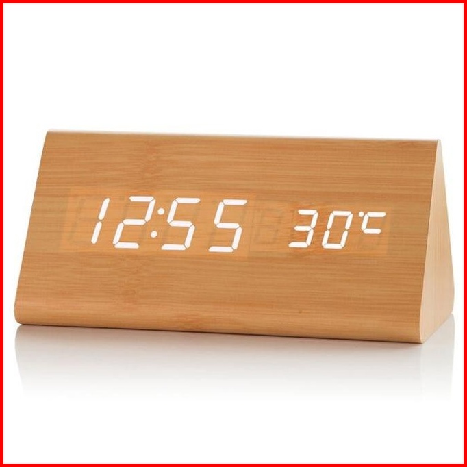 Jam Meja Kayu Digital Led Jam Estetik Suhu Digital Wood Smart Alarm Clock Estetik Jam Weker