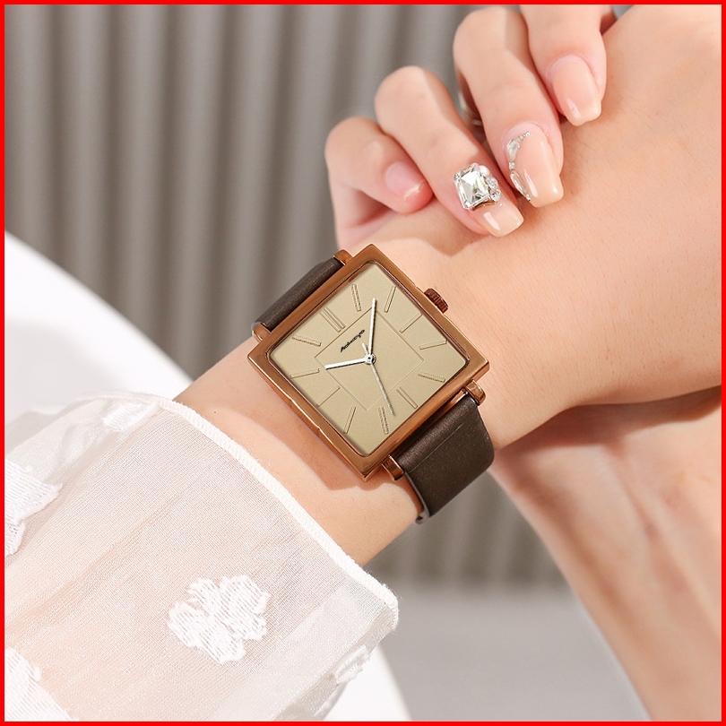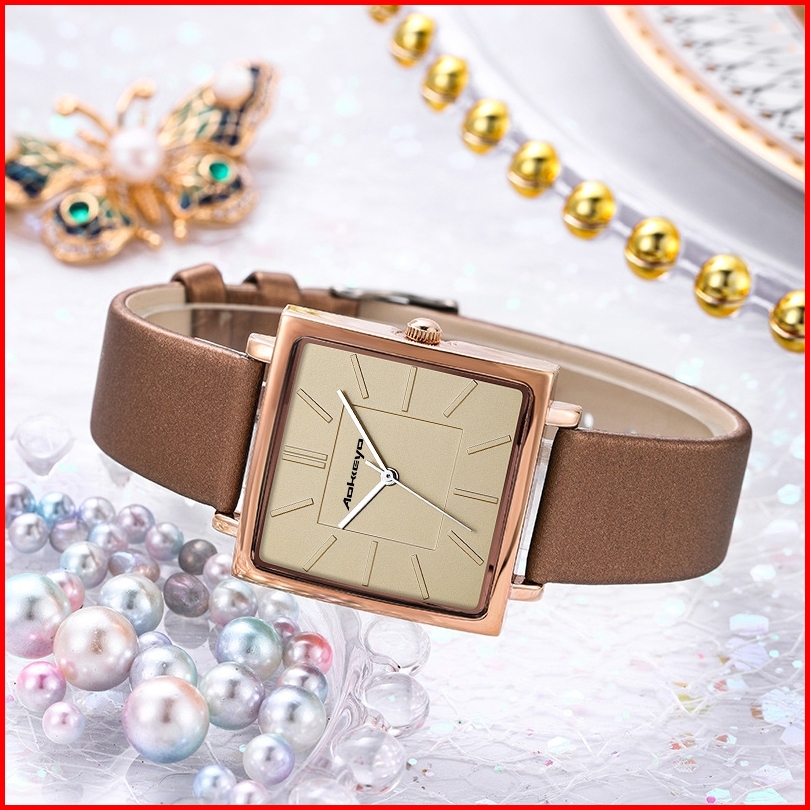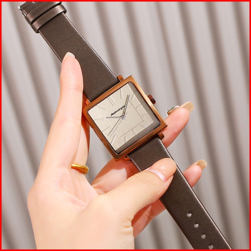 Aokeyo F61 Jam Tangan Wanita Retro Santai Square Dial Tali Kulit Anti Air Analog Kuarsa Jam Tangan Cewek Codfree Box Kar