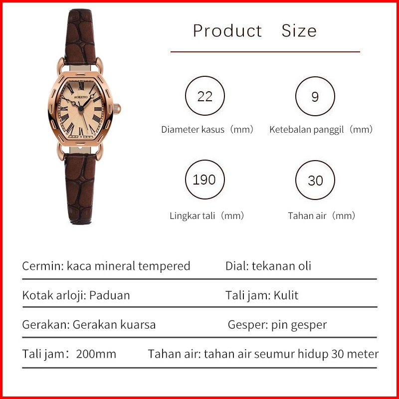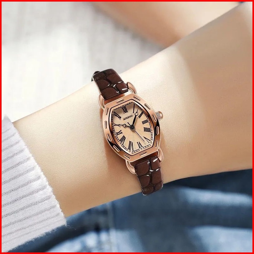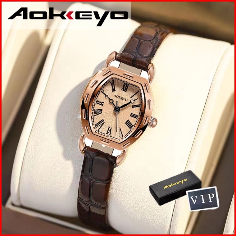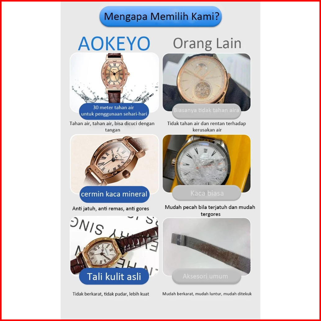 Aokeyo S053 Jam Tangan Wanita Klasik Mode Display Kuarsa Santai Jam Tali Kulit Tahan Air Jam Tangan Cewek Free Box Kartu