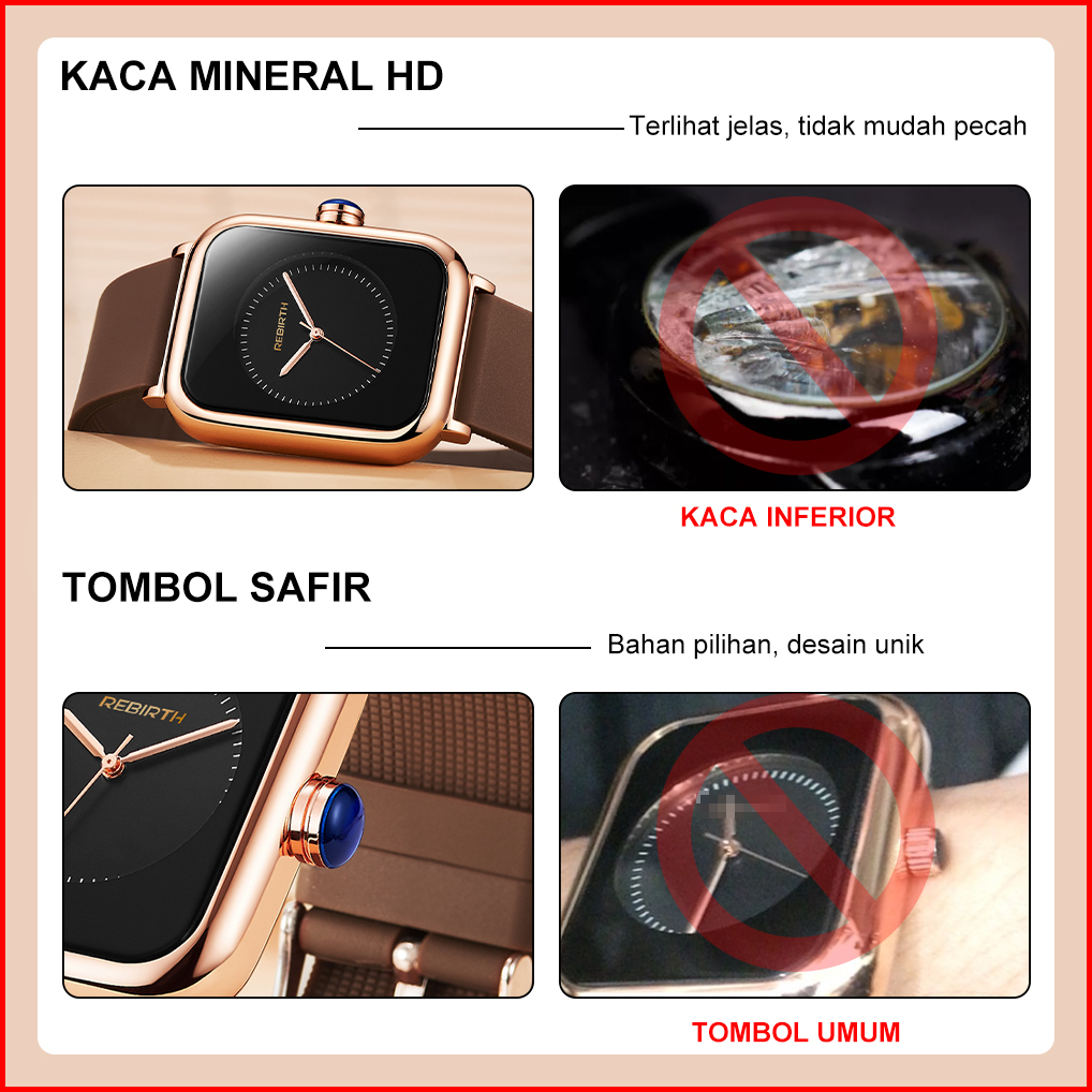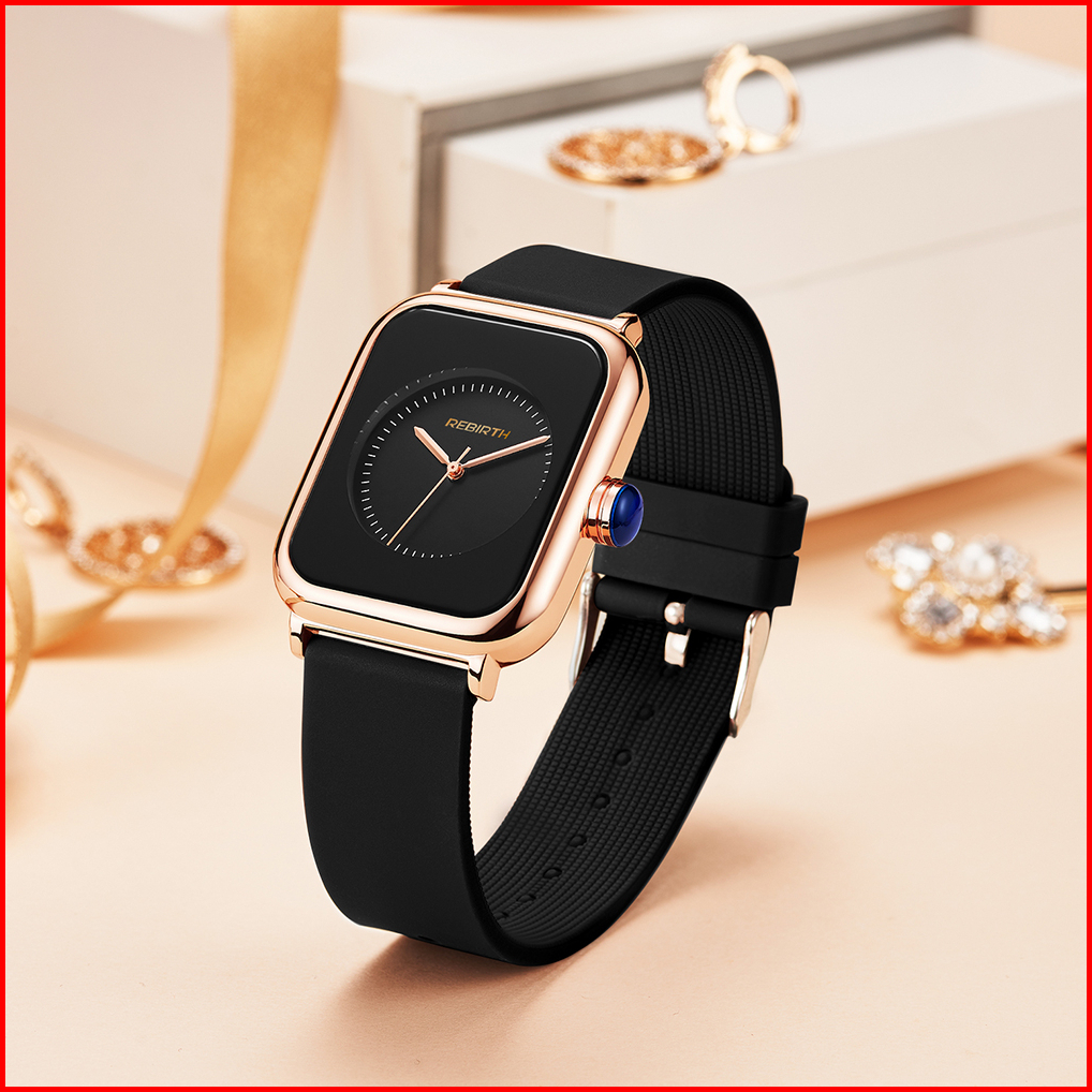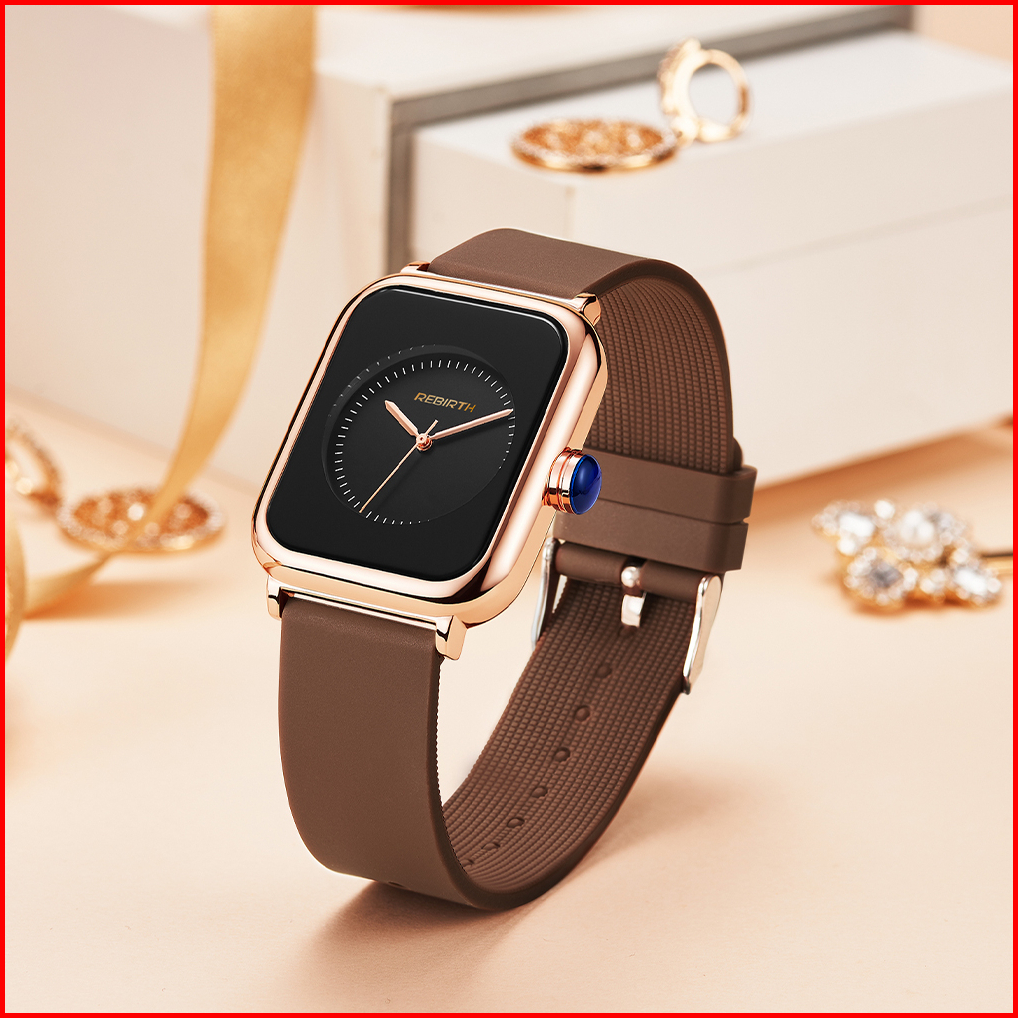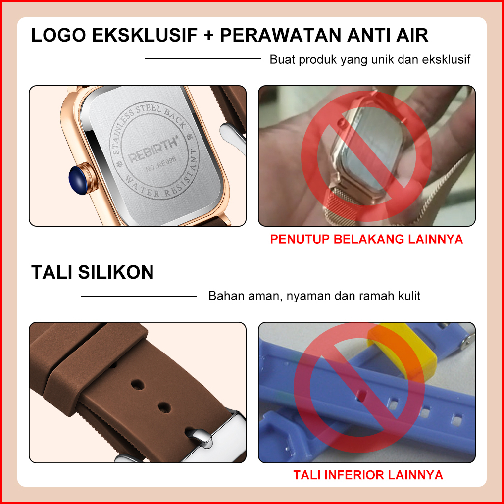 Rebirth Jam Tangan Wanita Anti Air Original Fashion Elegan Tali Silikon Kuarsa Simple Dial Jam Tangan Cewek