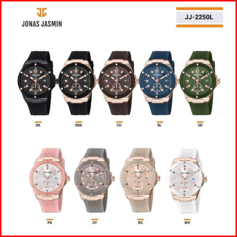 Jam Tangan Wanita Jonas Jasmin 2250 Original Rubber Tali Karet Chrono Detik Bawah Tanggal Aktif Jam Tangan Fashion Cewek