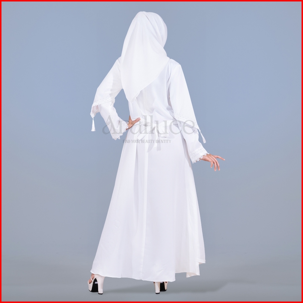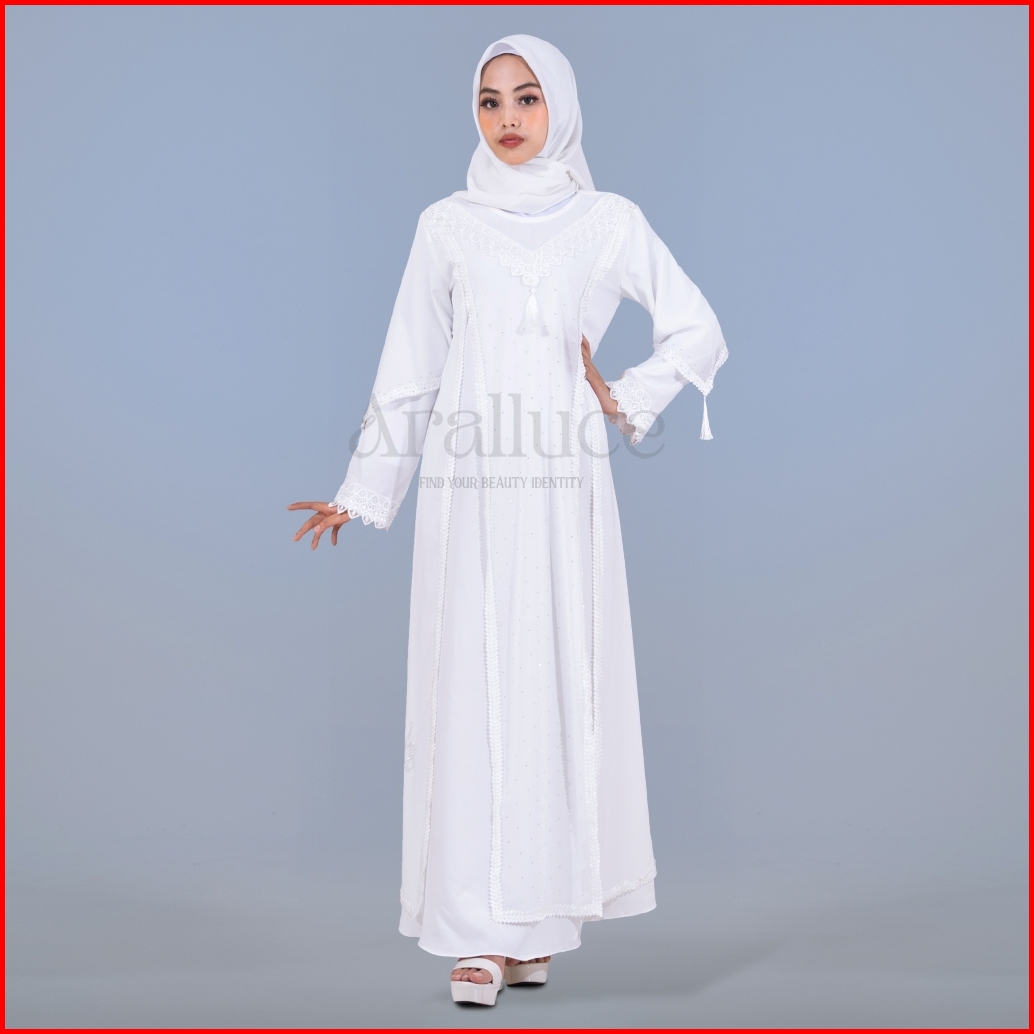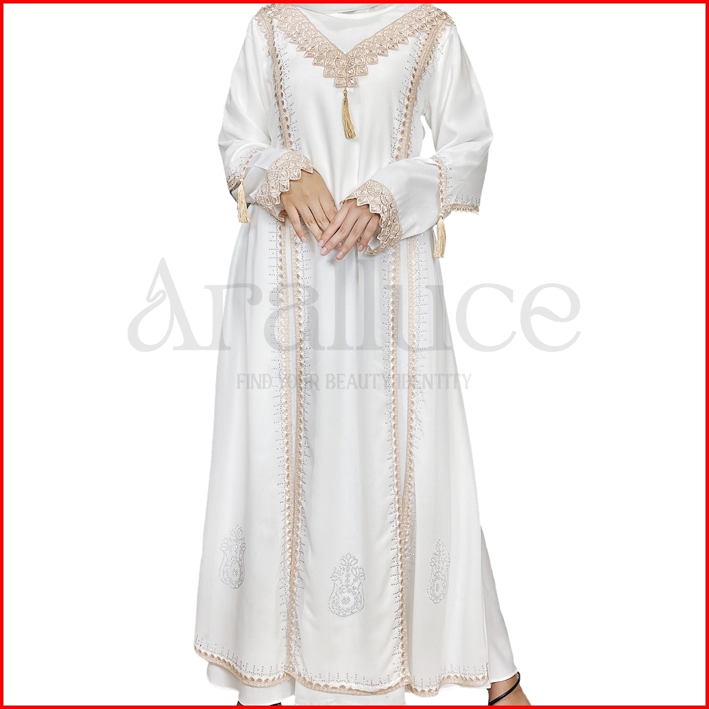 Aralluce Baju Gamis Putih Wanita Kekinian Arl 019 - Dress Abaya Warna Putih Terbaru Mewah Dan Elegan