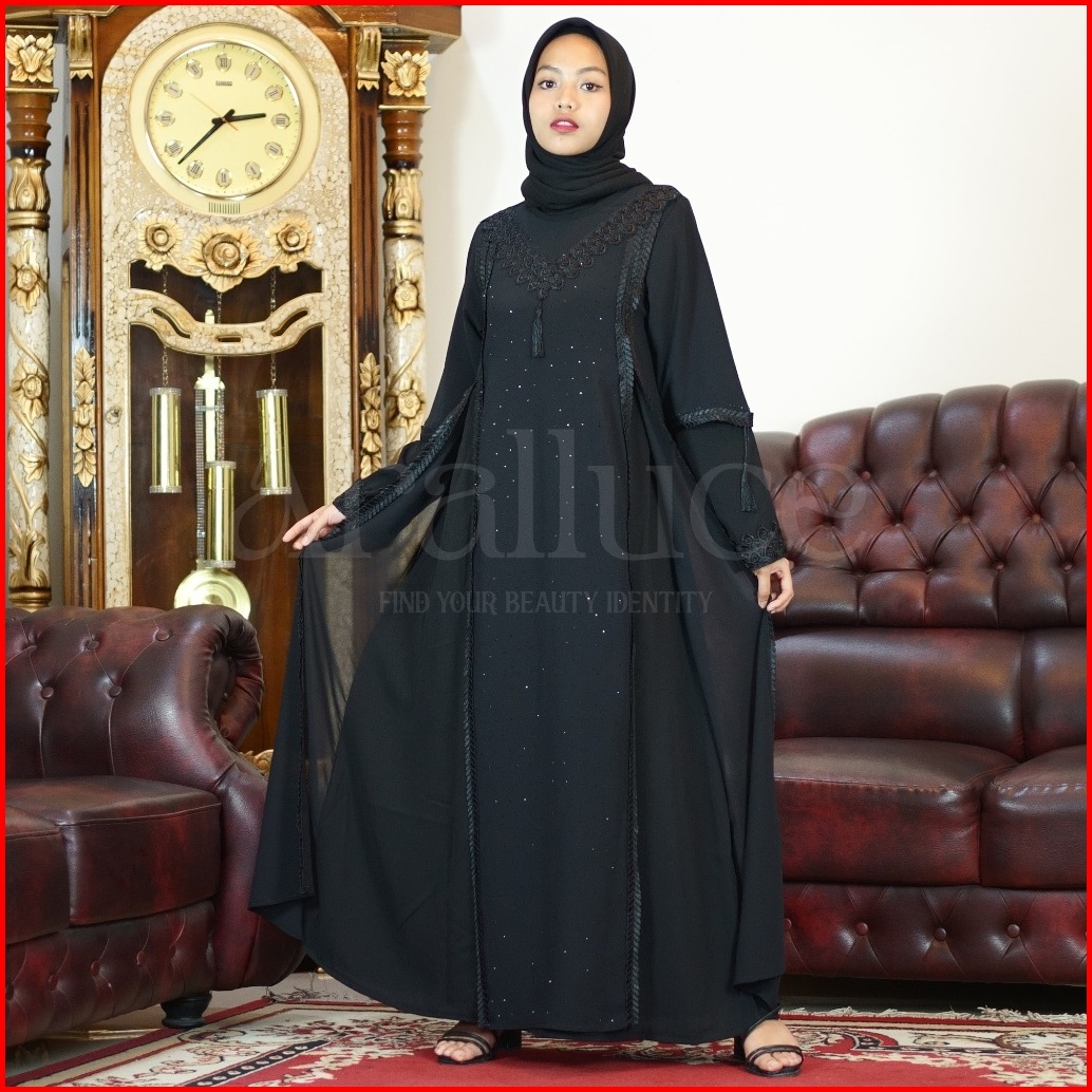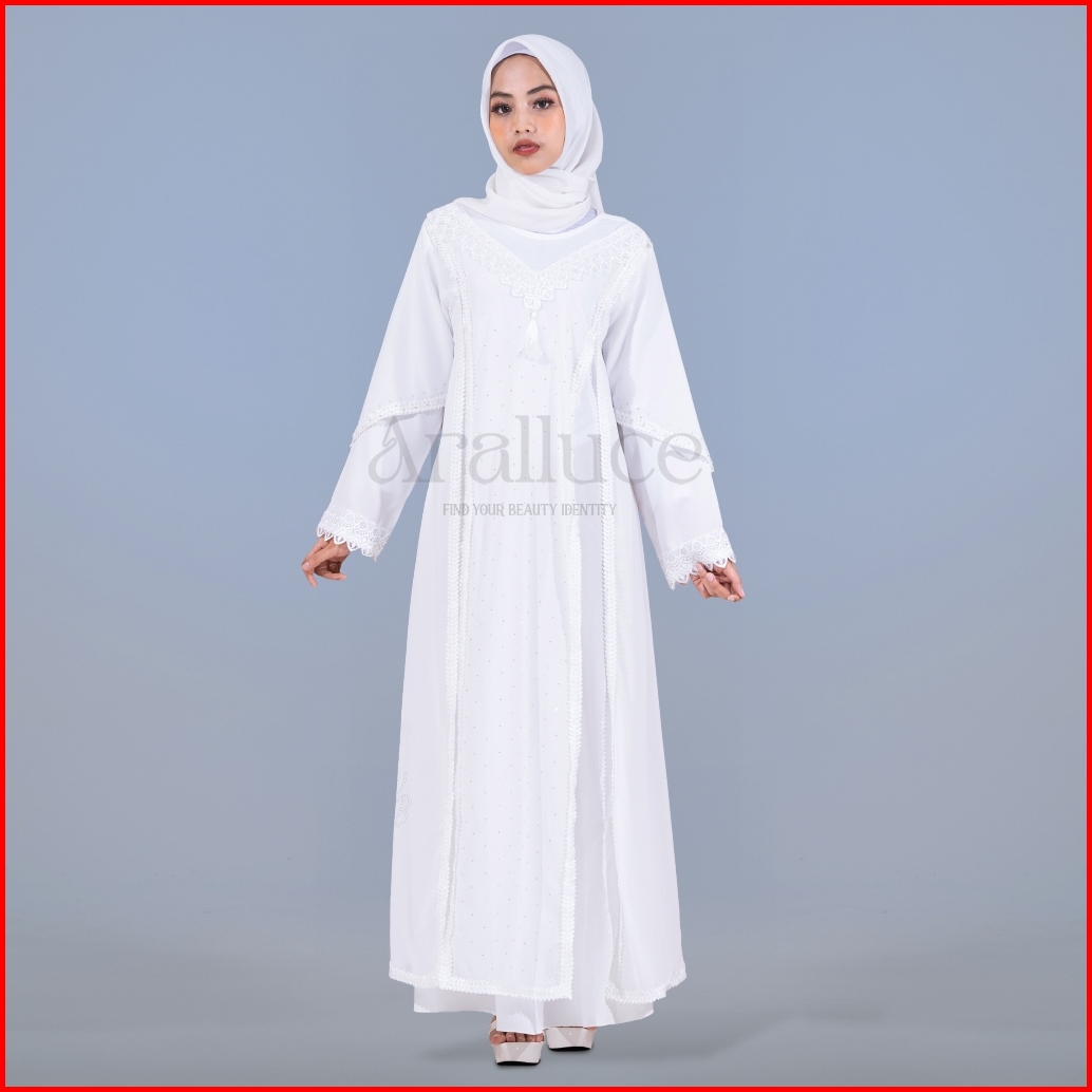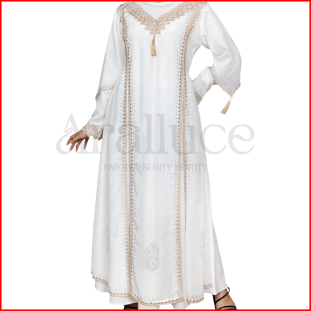 Aralluce Baju Gamis Putih Wanita Kekinian Arl 019 - Dress Abaya Warna Putih Terbaru Mewah Dan Elegan