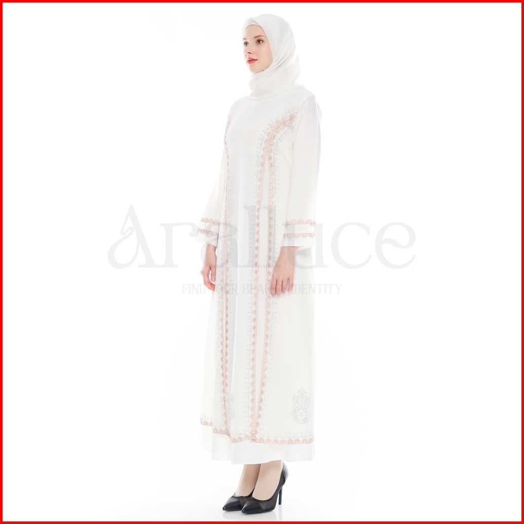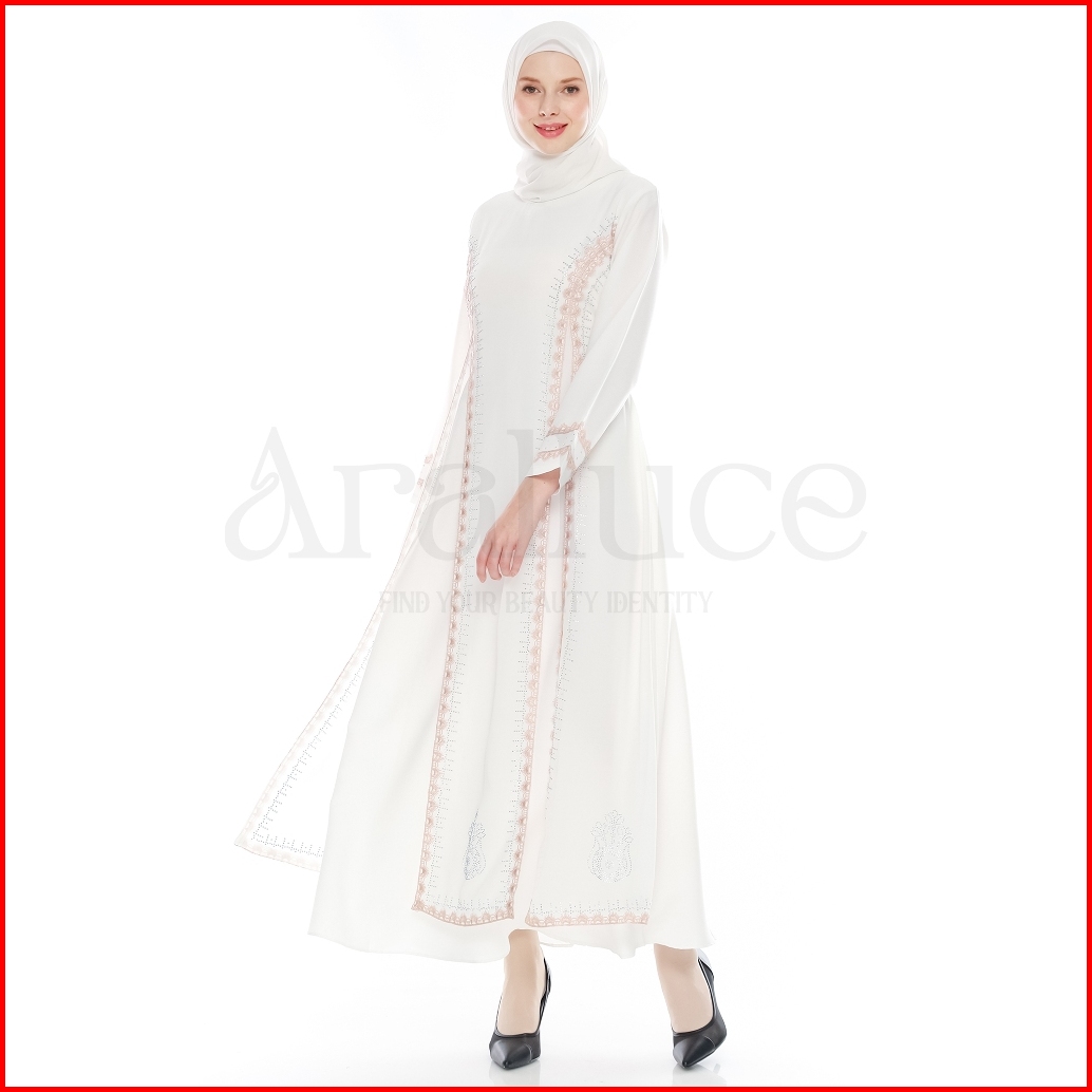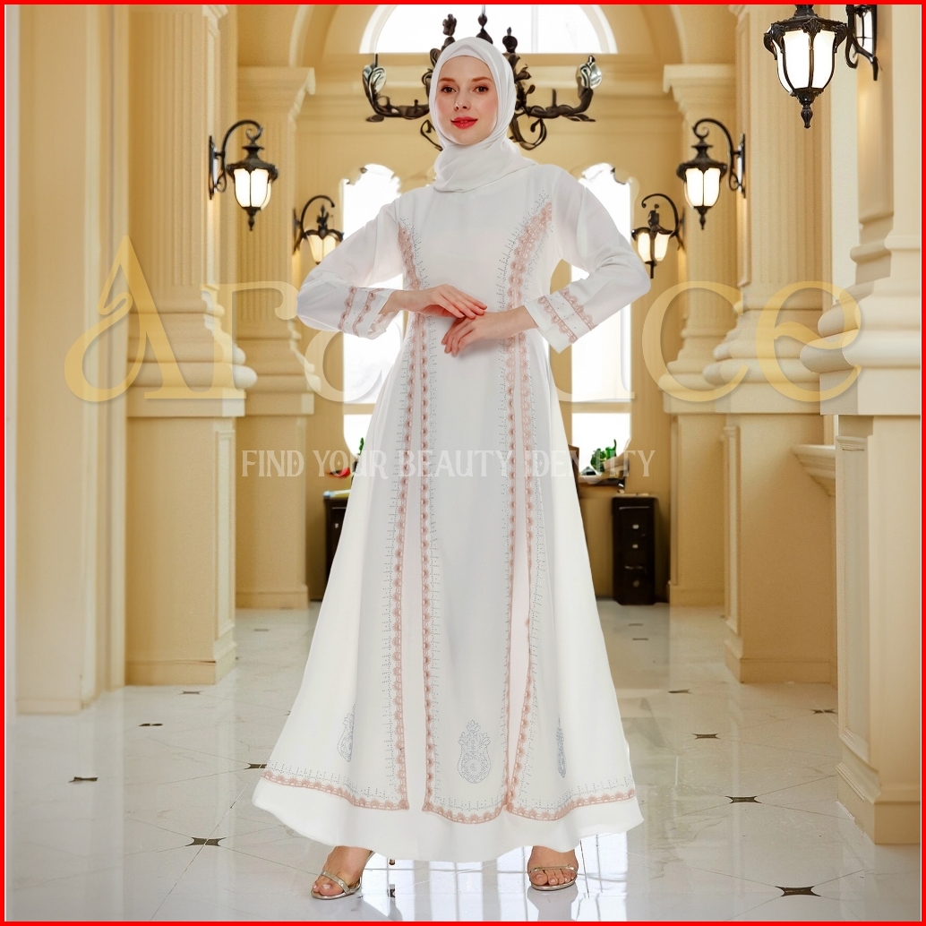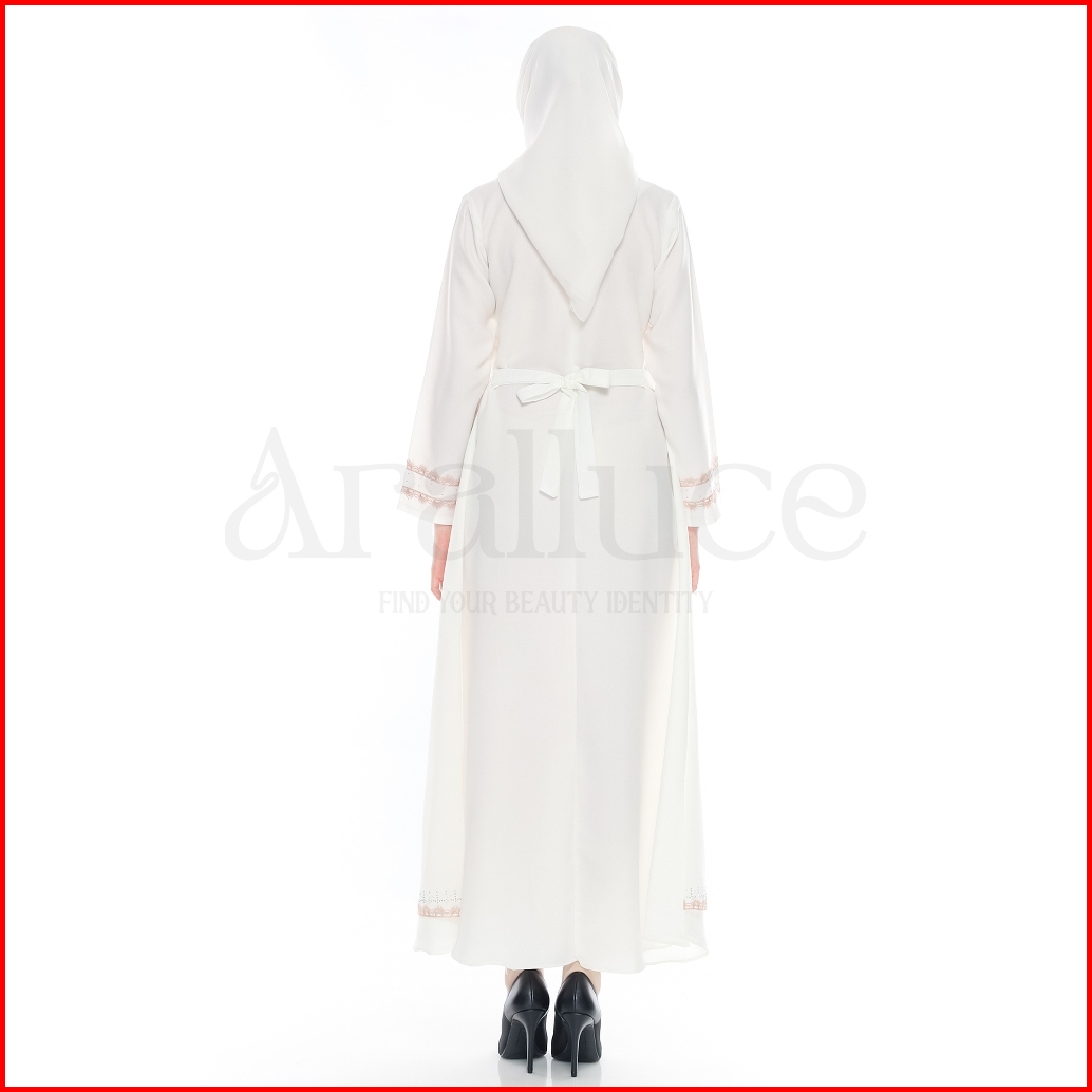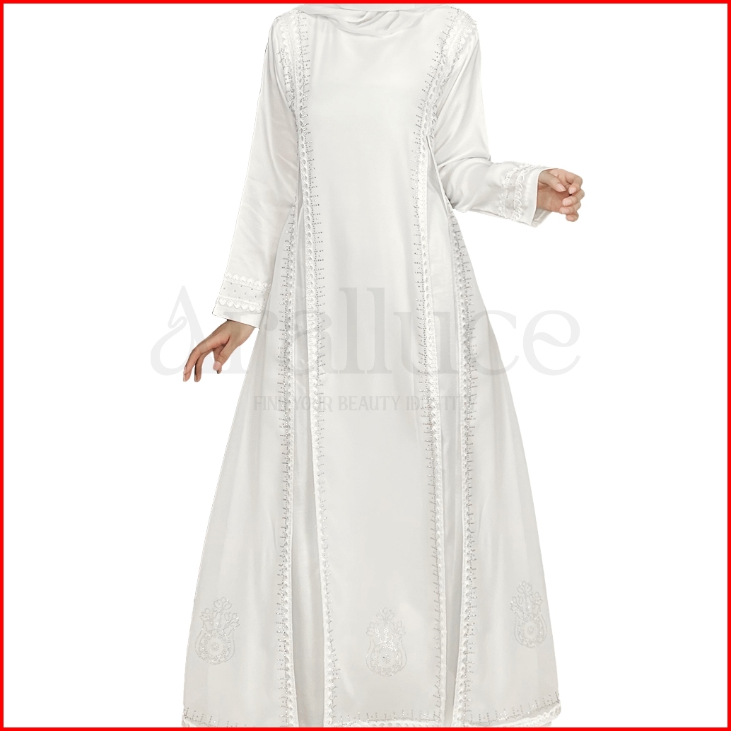 Aralluce Dress Abaya Putih Turkey Terbaru Arl 044 - Gamis Putih Wanita Kekinian Mewah Dan Elegan