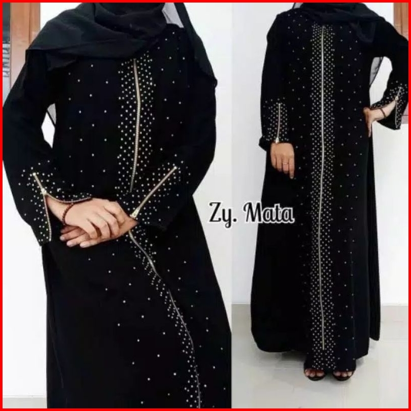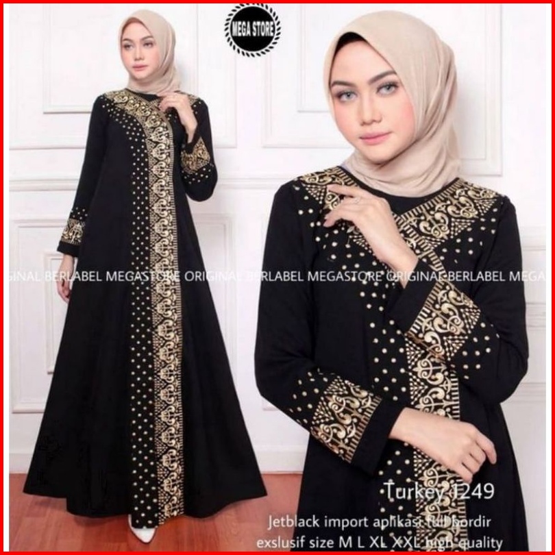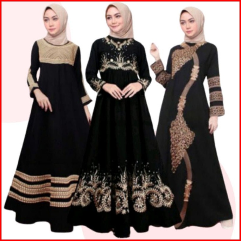 Abaya Hitam Gamis Syari Bordir Arab Saudi Elegan Model Terbaru Simpel Murah Mewah Jubah Santri Remaja Perempuan Arabian