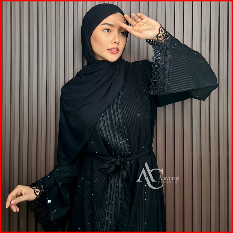 Alaydrus Collection Zara Abaya Hitam Turkey Gamis Syari Muslimah Bahan Jetblack Hitam Kombinasi Mata