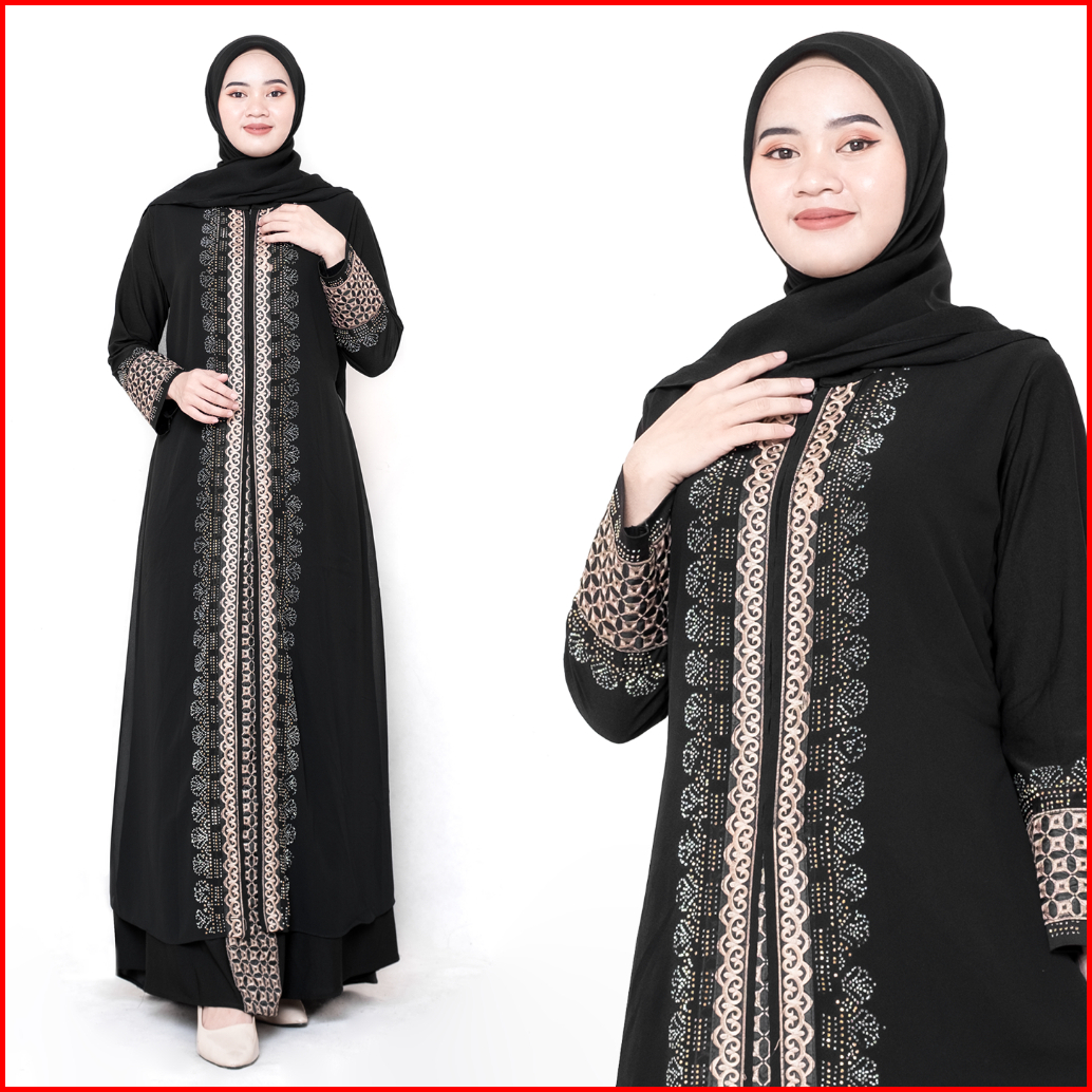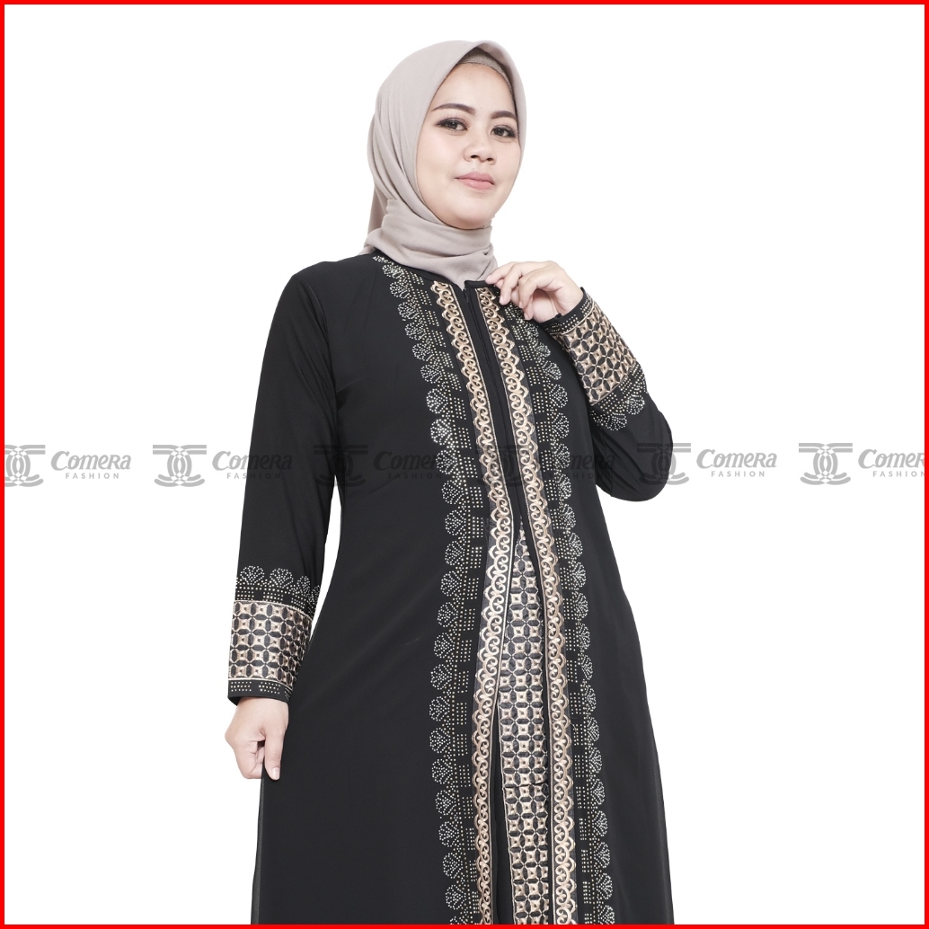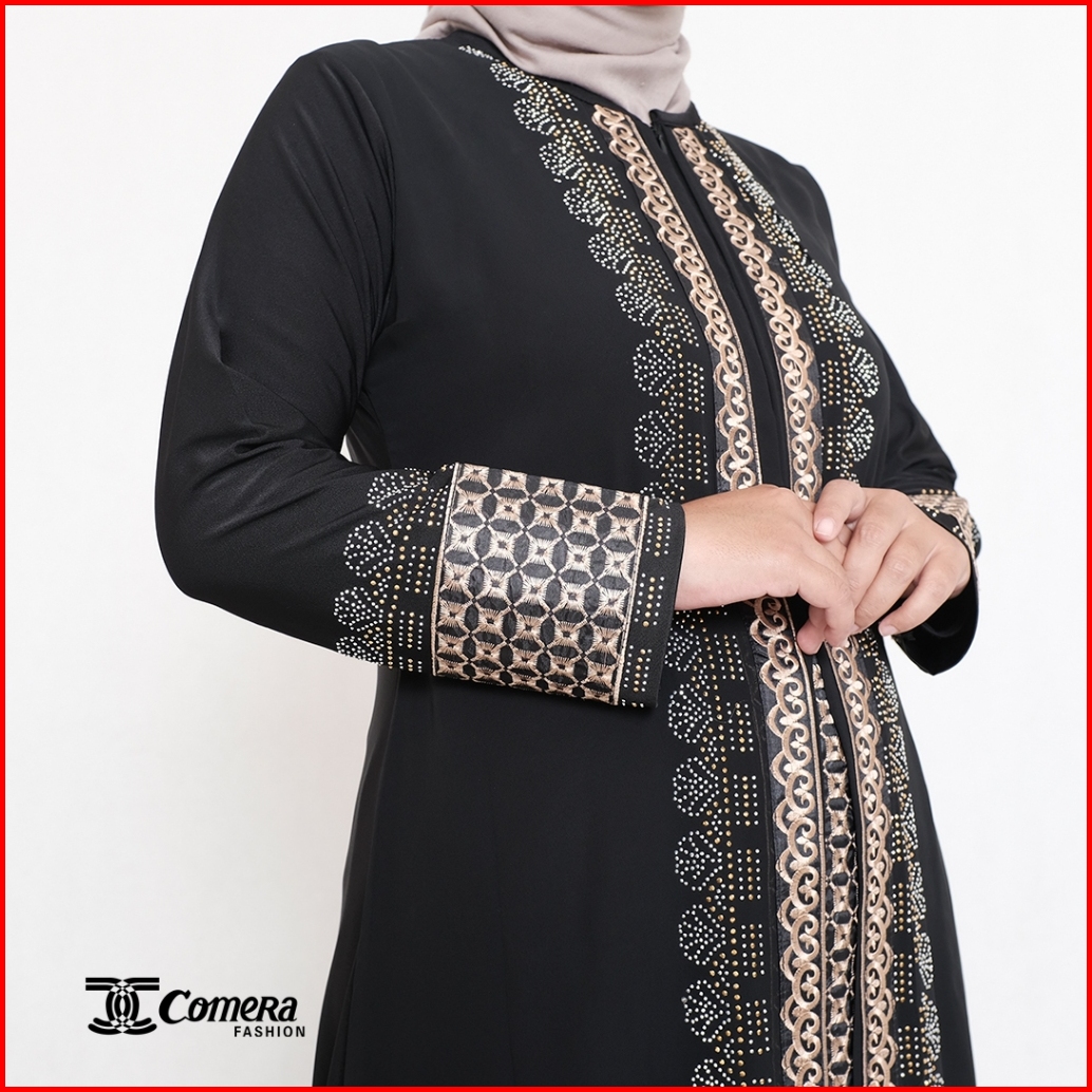 Comera - Abaya Hitam Turkey Bordir Dan Payet Jersey Mix Cerutty Buka Pintu Gamis Muslimah Wanita 297