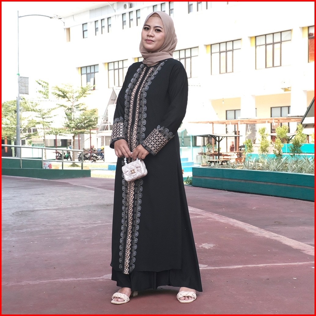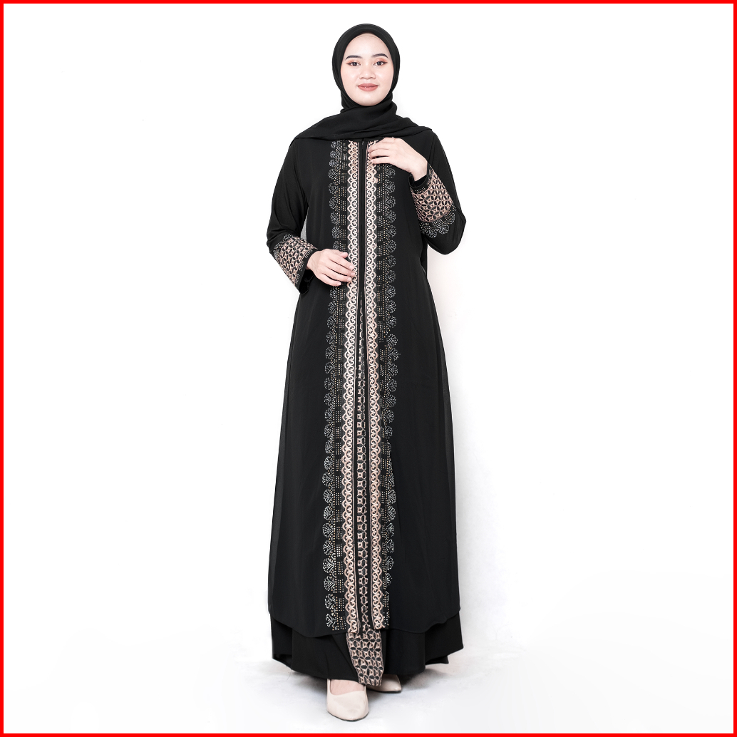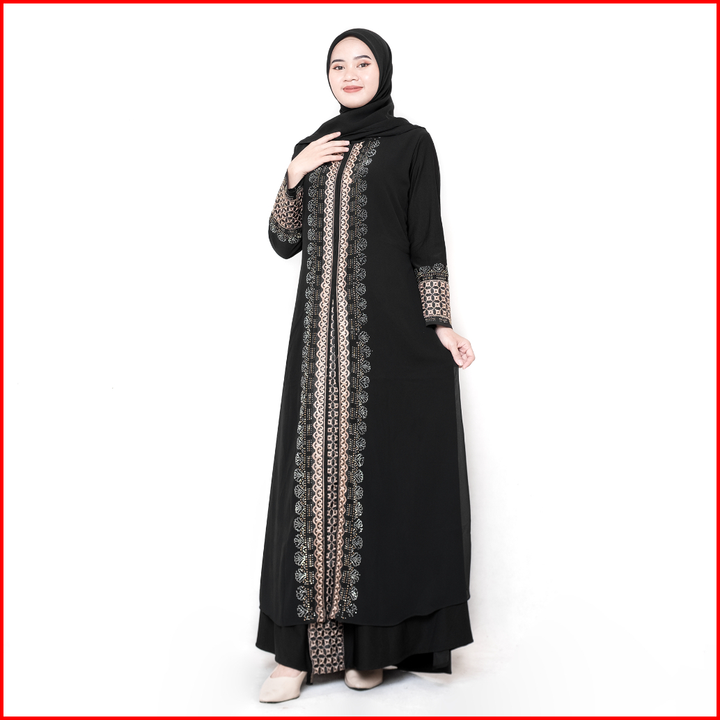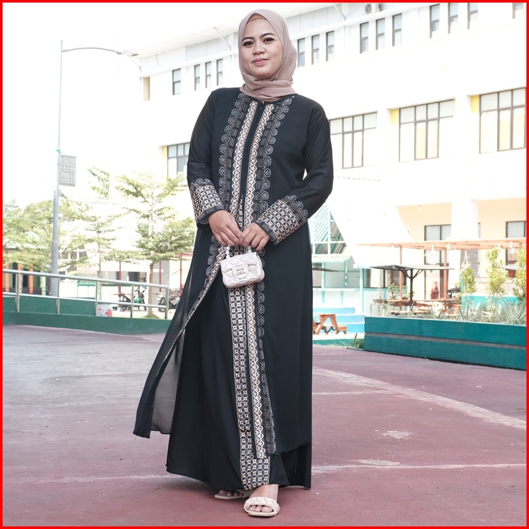 Comera - Abaya Hitam Turkey Bordir Dan Payet Jersey Mix Cerutty Buka Pintu Gamis Muslimah Wanita 297