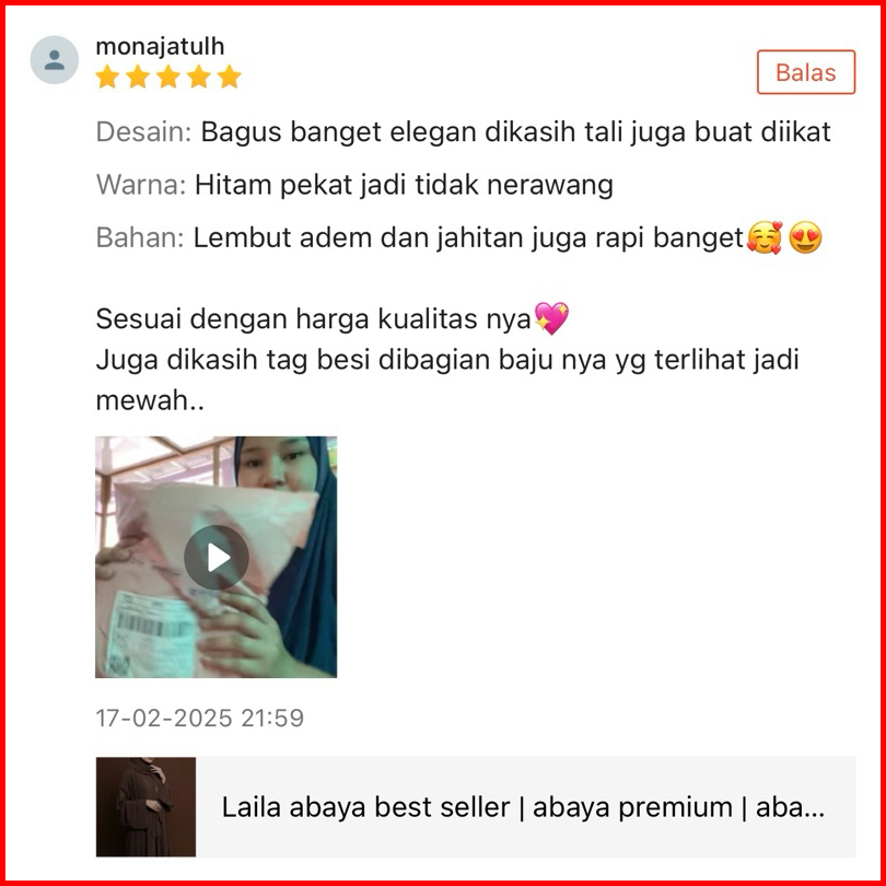 Laila Abaya Best Seller Abaya Premium Abaya Turkey Abaya Inner Outer Abaya Umroh Abaya Hitam Gamis Lebaran 2025