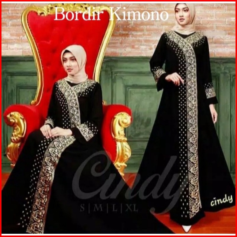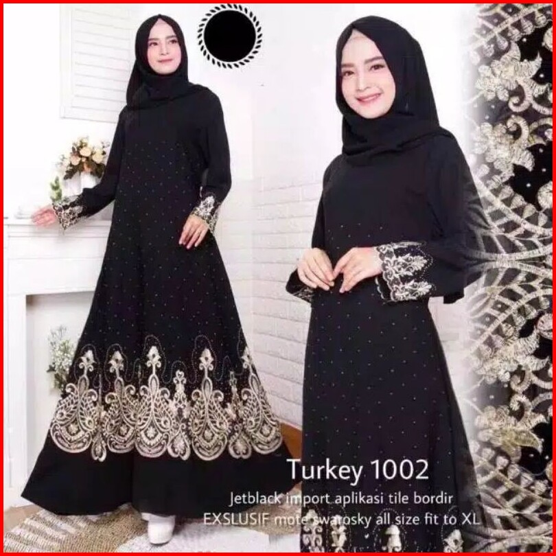 Baju Busana Muslim Abaya Gamis Couple Arab Hitam Bordir Turkey 1002