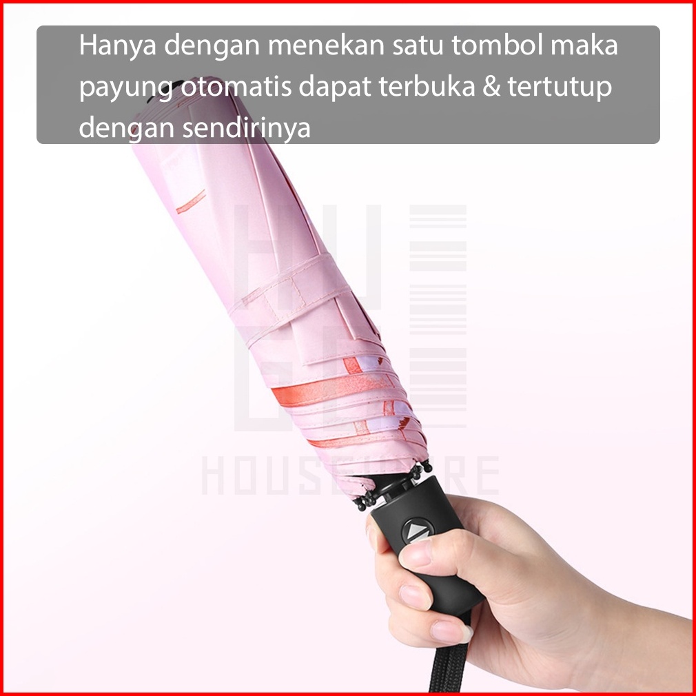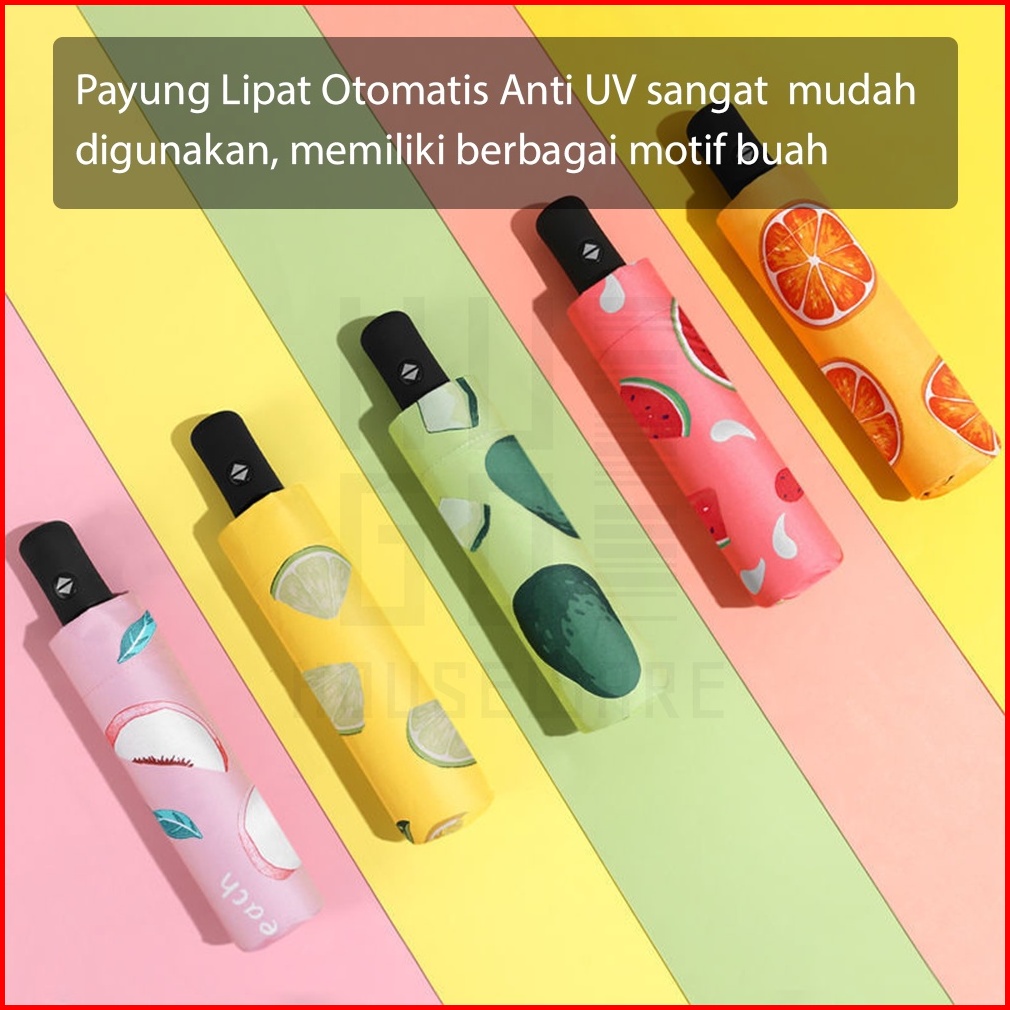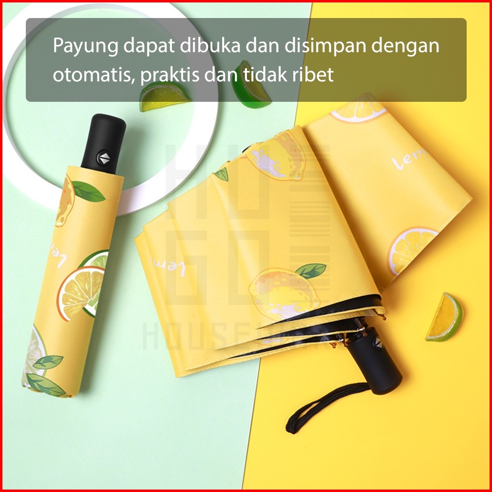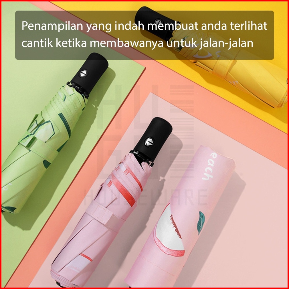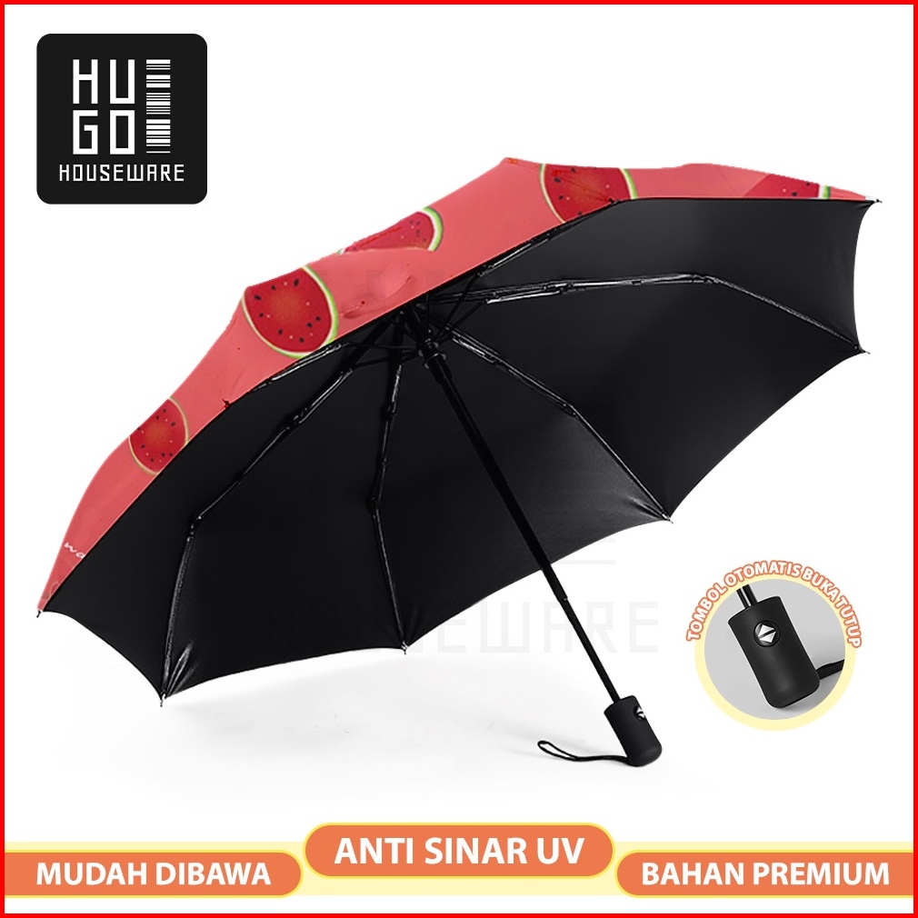 Hugo Payung Lipat Otomatis Motif Buah Rangka Fiberglass Anti Patah Anti Uv Premium Quality