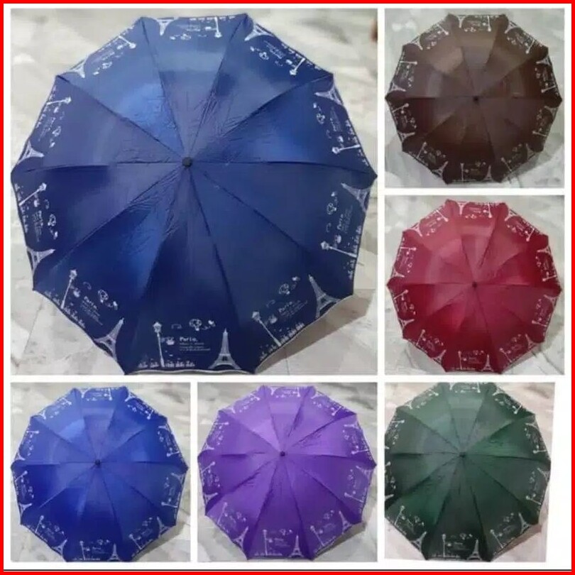 Payung Lipat 3 Jumbo Besar 10 R Jari Motif Paris Kode Nf-404 Dan Nf-405
