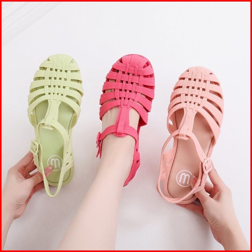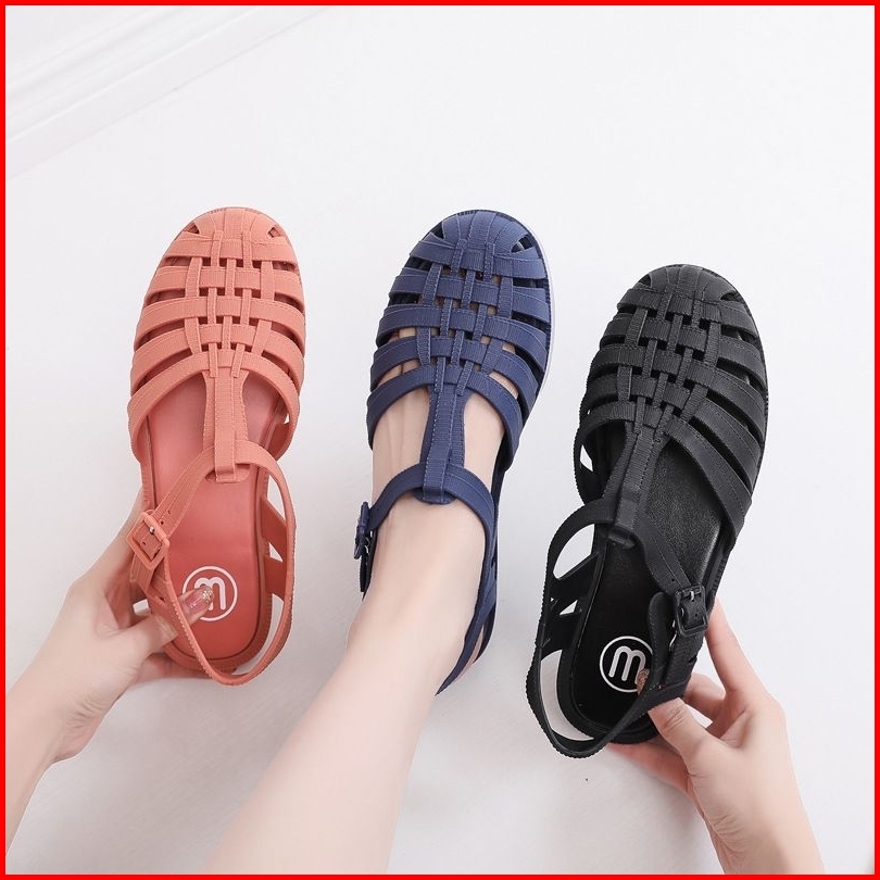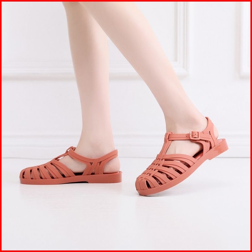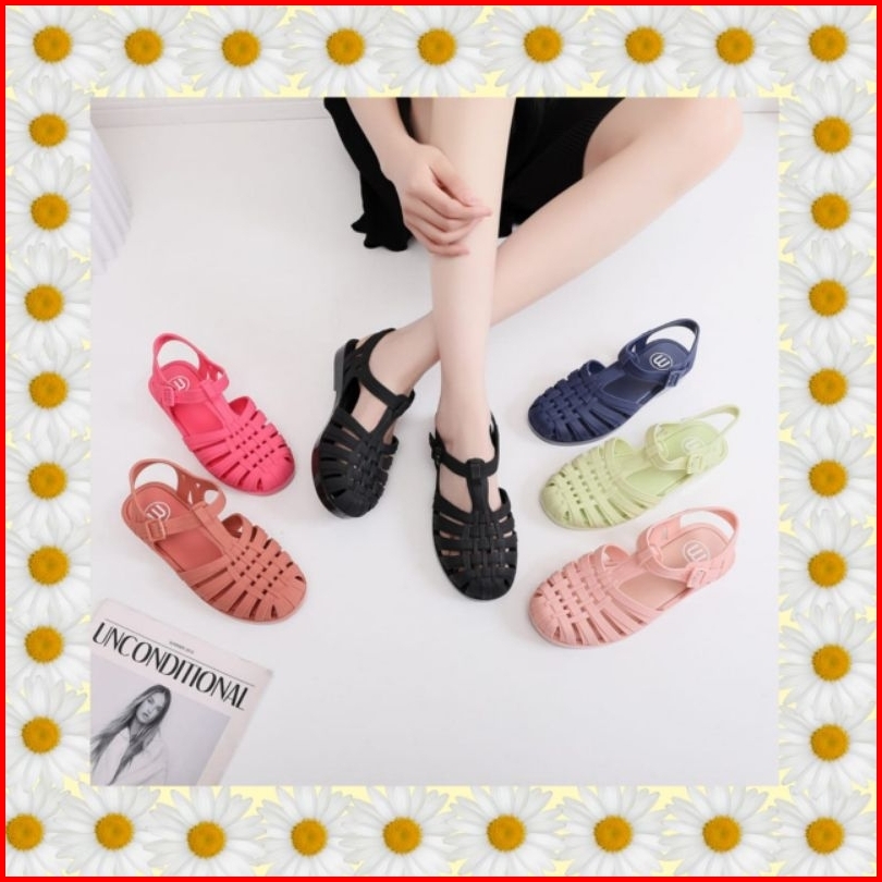 Shoes By Tira Meisha Double Strip Jelly Shoes Dewasa Sandal Jelly Wanita Sandal Karet Anti Slip Sandal Kekinian Korea Je