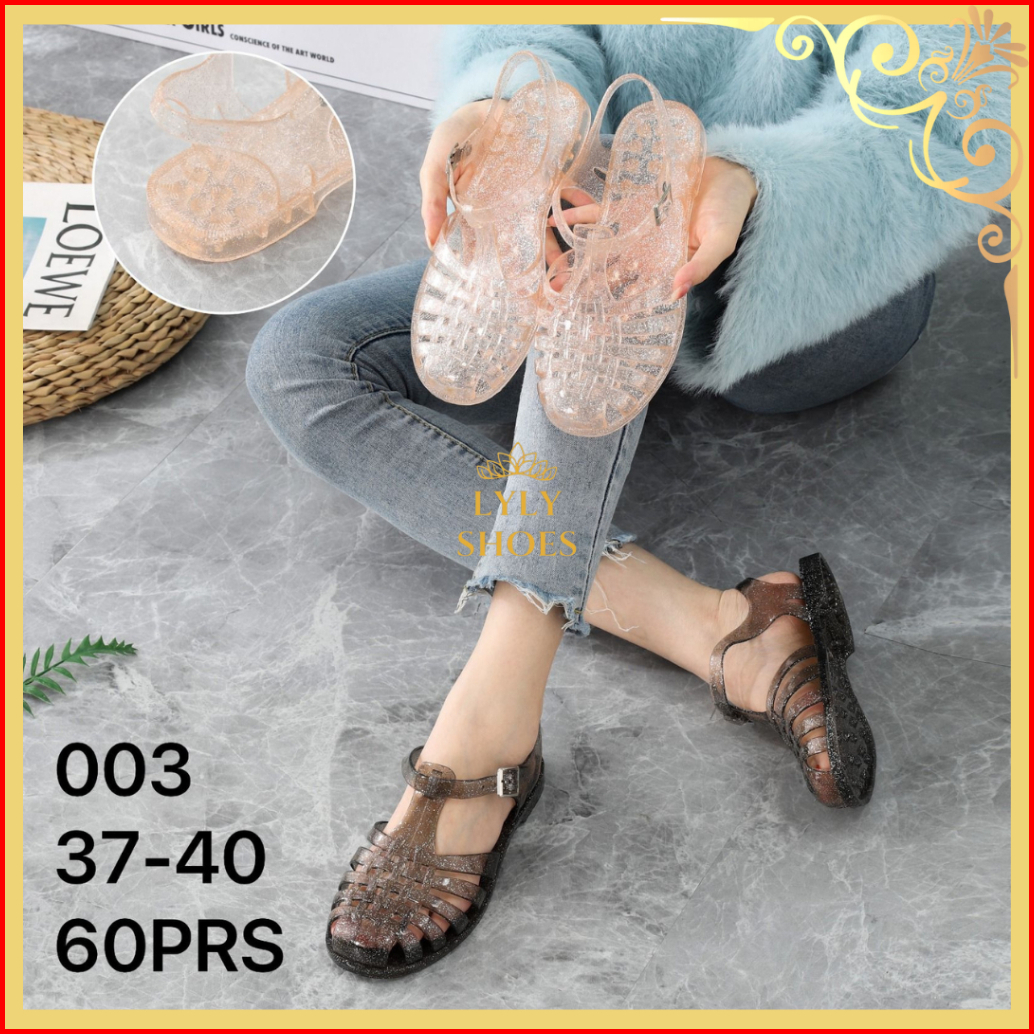 Turun 1 Size Sandal Karet Wanita Jelly Slip On Tali Belakang Transparant 003